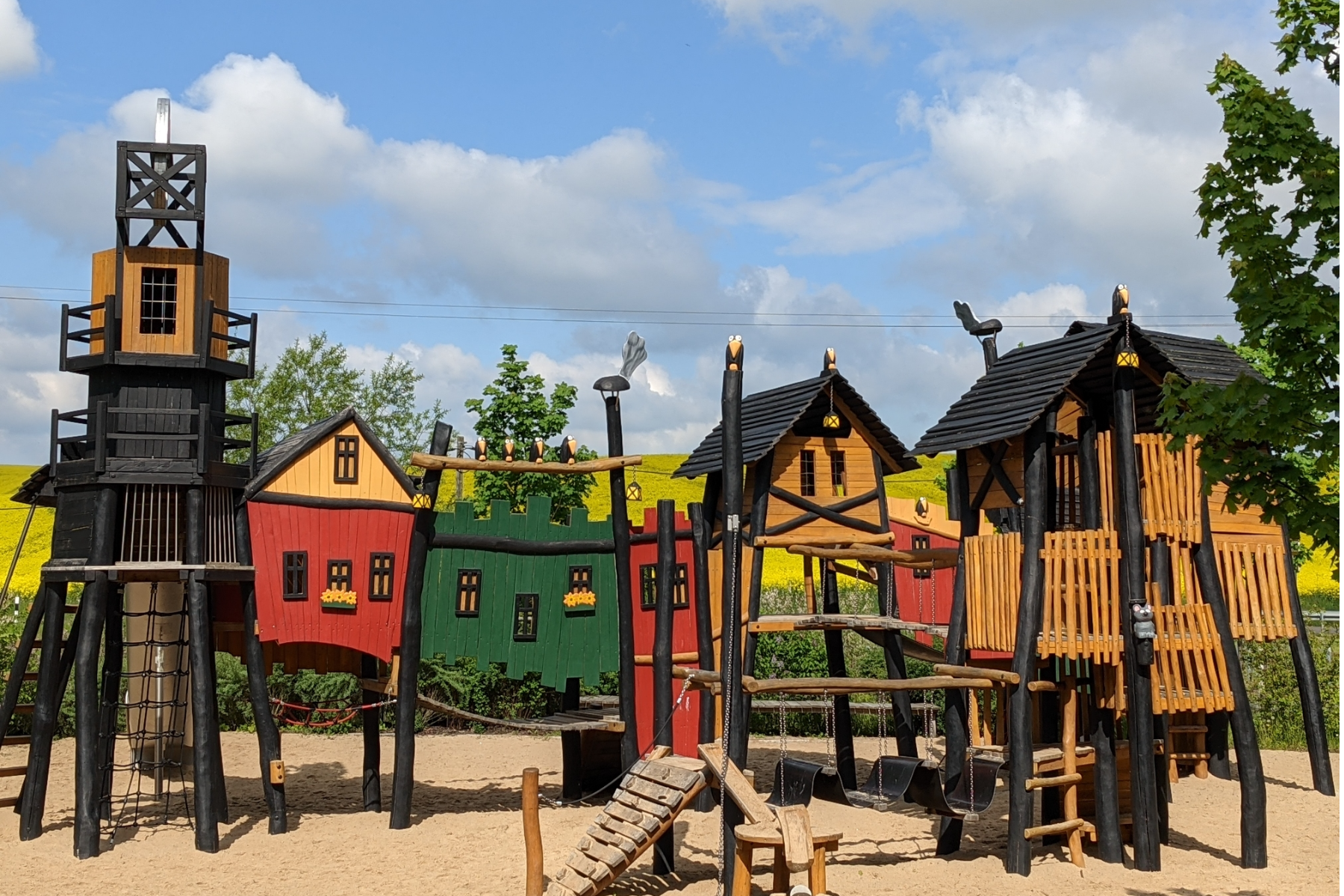 Für die Kinder ist es ein ganz außergewöhnlicher Ort zum Spielen, Toben aber auch zum Erfahrungen sammeln und zum Lernen. Hier dürfen sie sich wie richtige Bergleute fühlen, schließlich gibt es ein Bergwerkstädtchen, Loren und Bergwerksgänge. Viele weitere Spielgeräte unterstützen den Abenteuer- und Entdeckerdrang der Kinder und garantieren fantasievolle Spielerlebnisse.