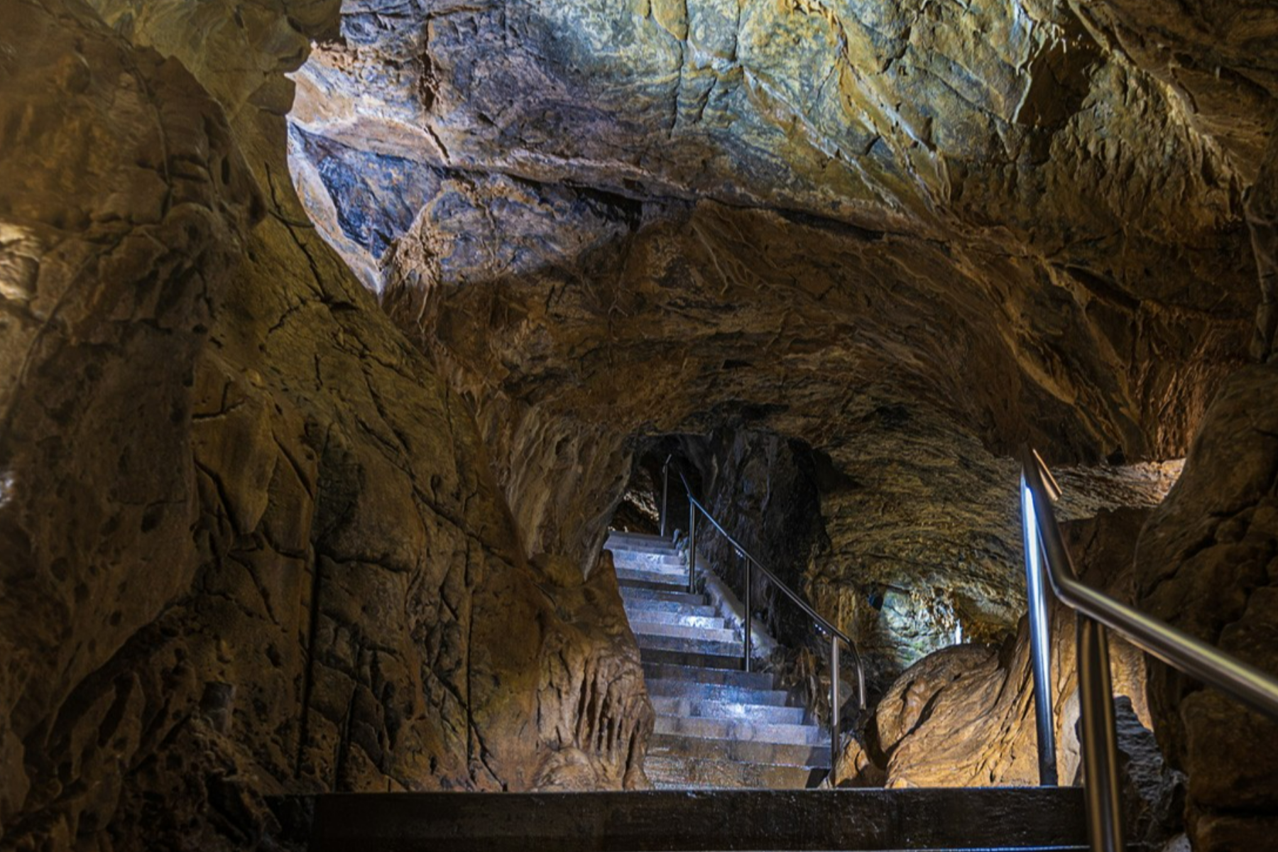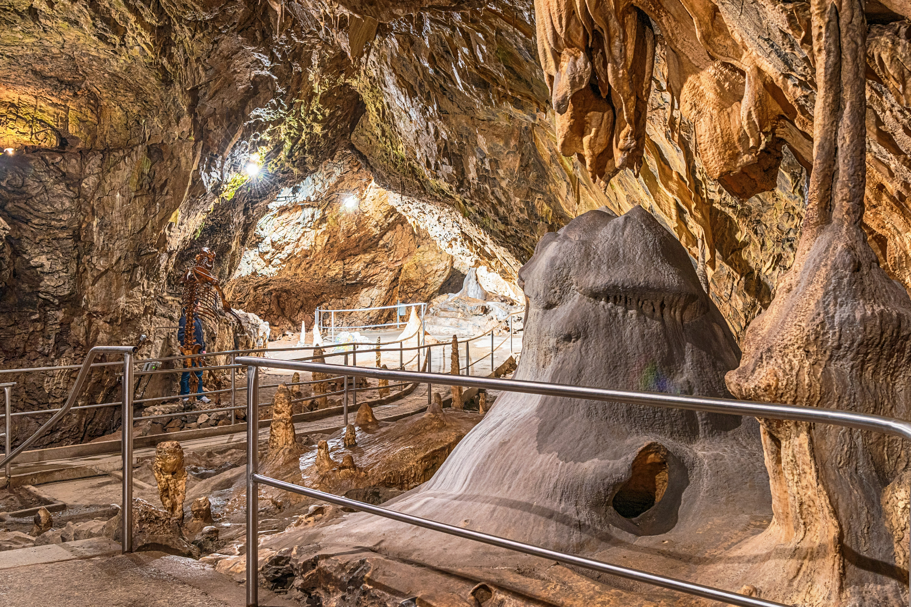 In der Hermannshöhle führen rund 300 Treppenstufen durch riesige, bis zu 50 Meter hohe Hohlräume mit einer Vielzahl einzigartiger Tropfsteinformationen. Highlights sind hier unter anderem die Kristallkammer mit ihren filigranen Calzit-Kristallen sowie der Olmensee, in dem Deutschlands einzige Grottenolme leben.