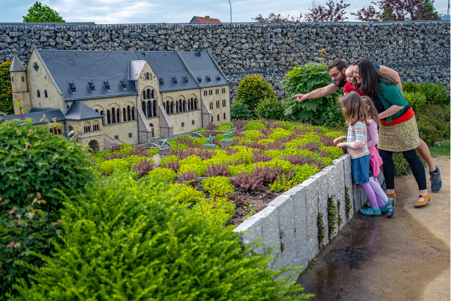 Den Harz an nur einem Tag besichtigen? Der Miniaturenpark „Kleiner Harz“ macht`s möglich. In wenigen Minuten gelangen Sie hier von der Kaiserpfalz Goslar vorbei am Halberstädter Dom zum Wernigeröder Schloss. In Thale gondelt die Seilbahn, wie ihr großes Vorbild, hinauf zum Hexentanzplatz, umrahmt von der eindrucksvollen Kulisse des Bodetals. Die rund 60 Modelle der bedeutendsten Harzer Sehenswürdigkeiten wurden im Maßstab 1:25 gefertigt und bestechen vor allem durch ihre Detailtreue. Jeder kleine Fenstersims, jeder Dachziegel und jede Verzierung wurden vom Original übernommen. Umrahmt werden die Miniatur-Bauten von der liebevoll gestalteten Landschaftskulisse aus Bonsai-Bäumen, Bergen, Felsen und Bachläufen.