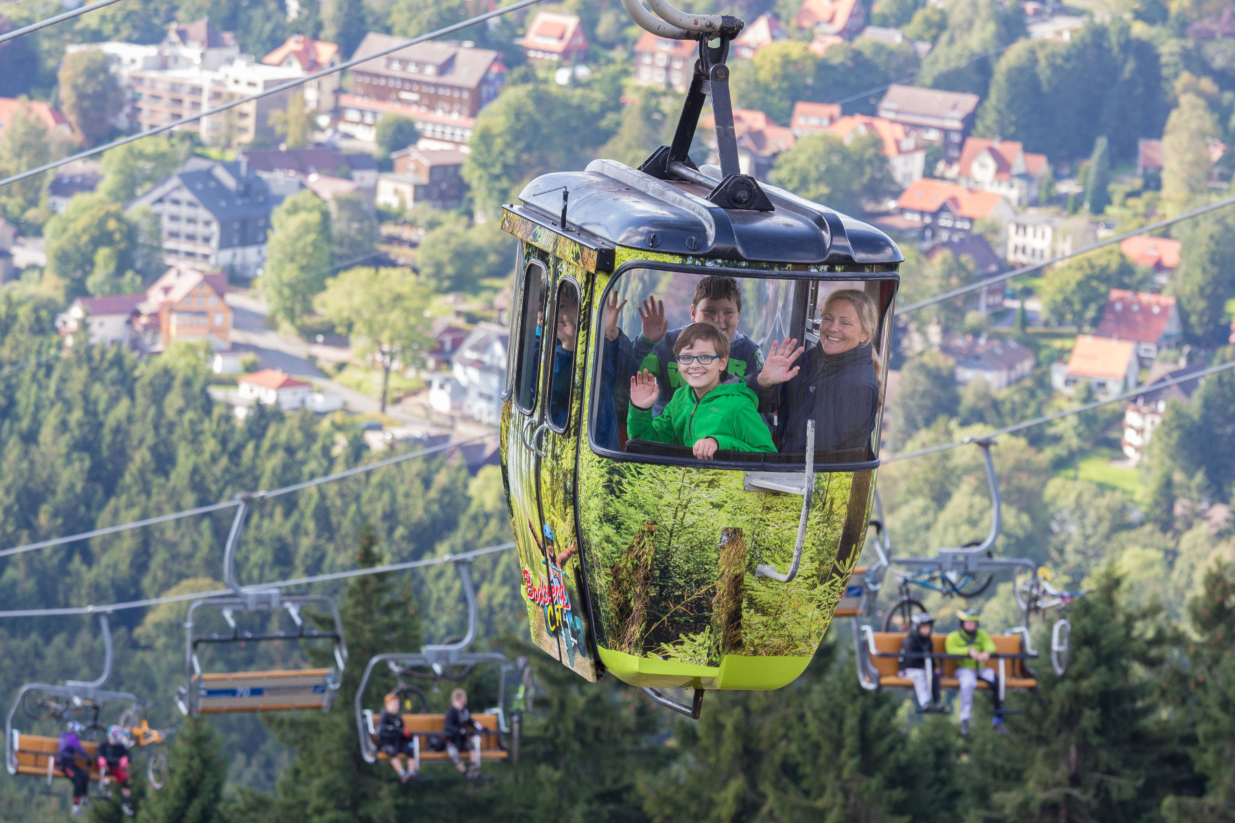 In der Hahnenkleer Fußgängerzone beginnt für euch ein erlebnisreicher Ausflugstag mit der ganzen Familie, euren Freunden, Kollegen oder auch allein. Von dort bringt euch unsere traditionelle Kabinenbahn auf den 727 m hohen Bocksberggipfel. Auch unser Sessellift startet am Fuße des Bocksbergs. Mit diesem fahren überwiegend unsere Mountainbiker zum Bikepark Hahnenklee.
