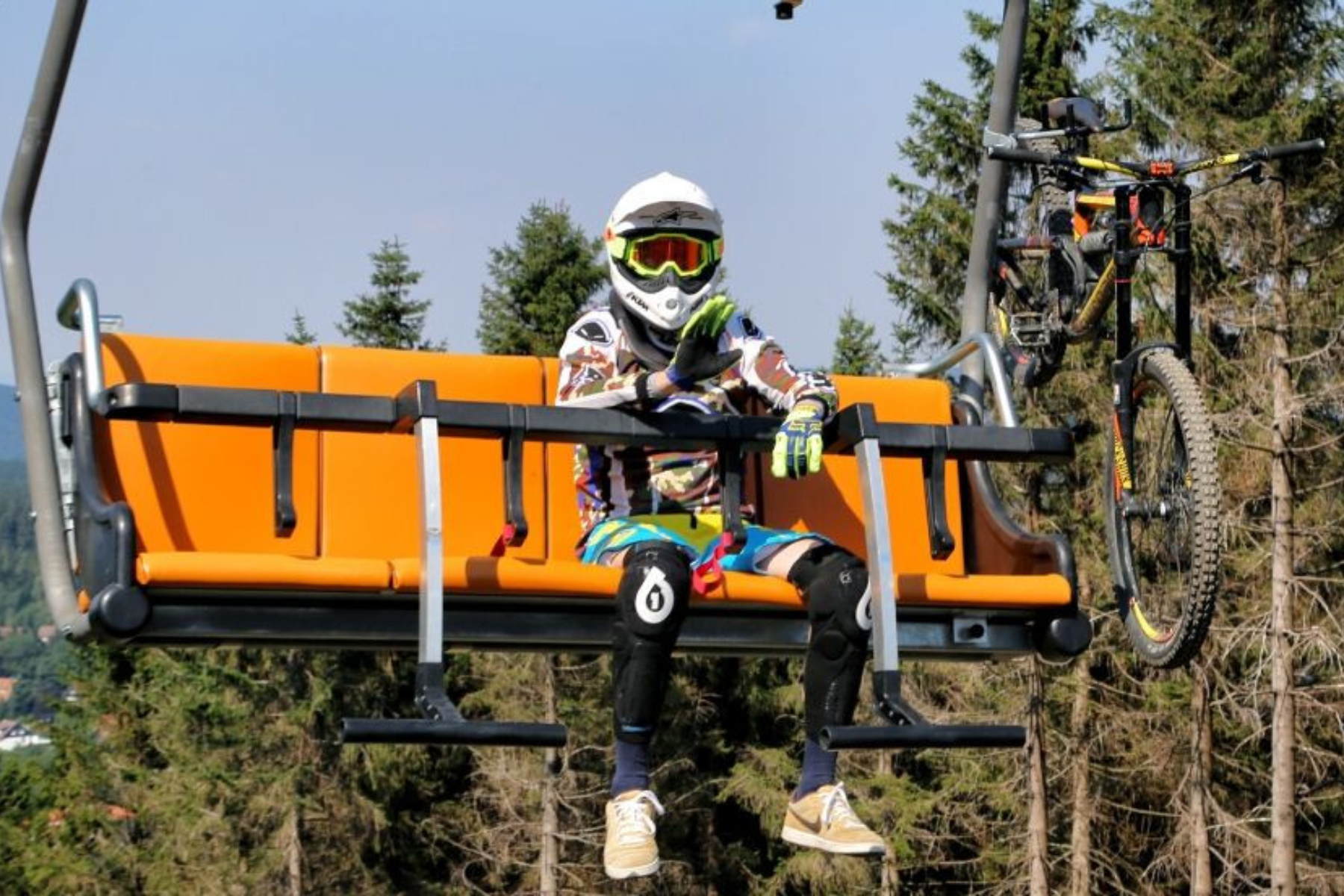 Unser Sessellift startet nur wenige Meter von der Kabinenbahn entfernt. Hiermit fahren überwiegend die Mountainbiker zum Gipfel, um im Bikepark ein paar sportliche Abfahrten zu machen.