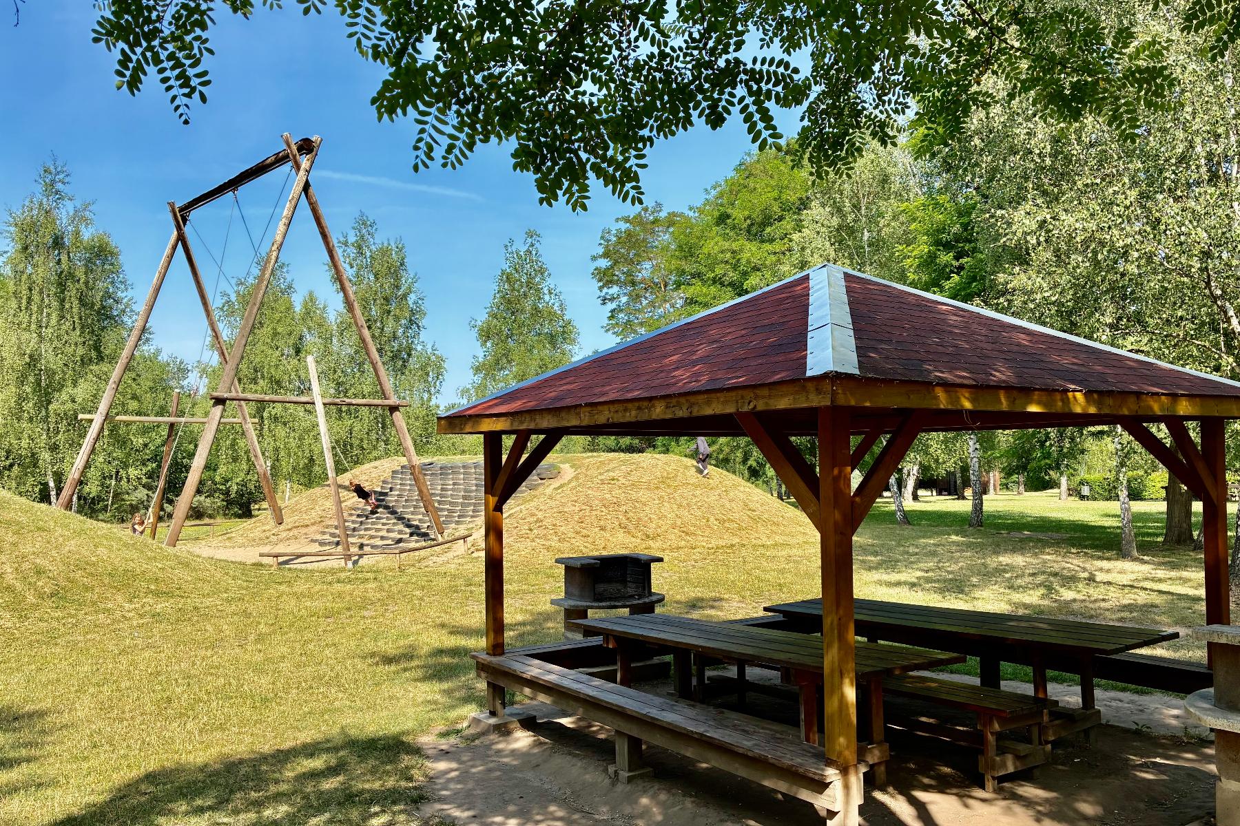 Auf dem weitläufigen Gelände befinden sich außerdem überdachte Sitzgruppen und Grillplätze, die gemietet werden können. Perfekt für einen Familienausflug, einen Kindergeburtstag oder einen entspannten Sommertag mit Freunden.
