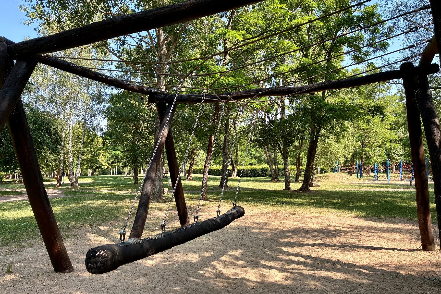 Mehr als 50 Spielgeräte, Figuren, Kletterburgen, Schaukeln und Wippen – überwiegend aus Holz gefertigt – laden zum ausgelassenen Toben ein. Dabei sind die meisten Geräte so dimensioniert, dass auch Erwachsene wieder zum Kind werden dürfen und gemeinsam mit ihrem Nachwuchs Abenteuer erleben.