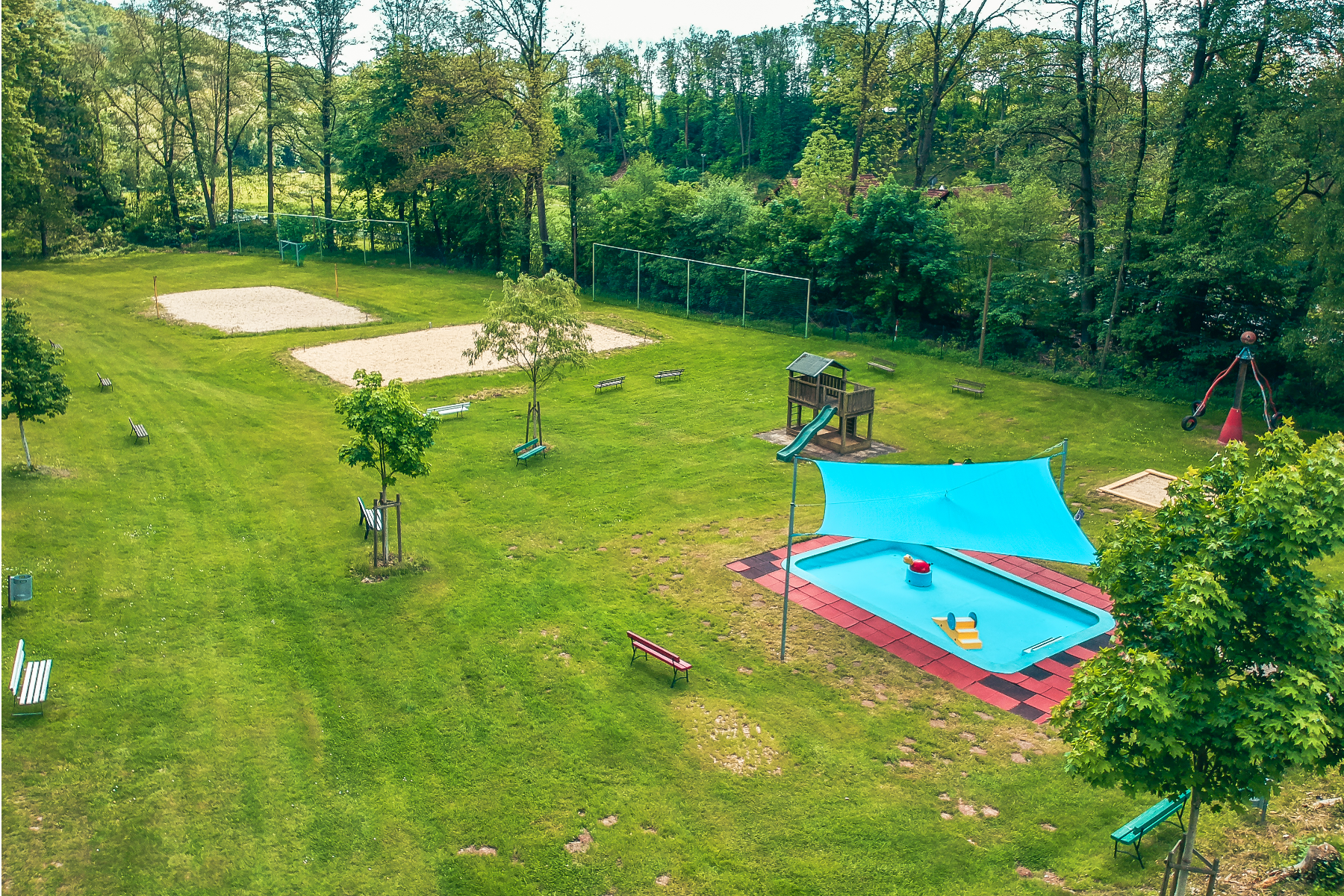 Fußball-, Volleyball- und Tischtennisanlage, der großen und ruhig