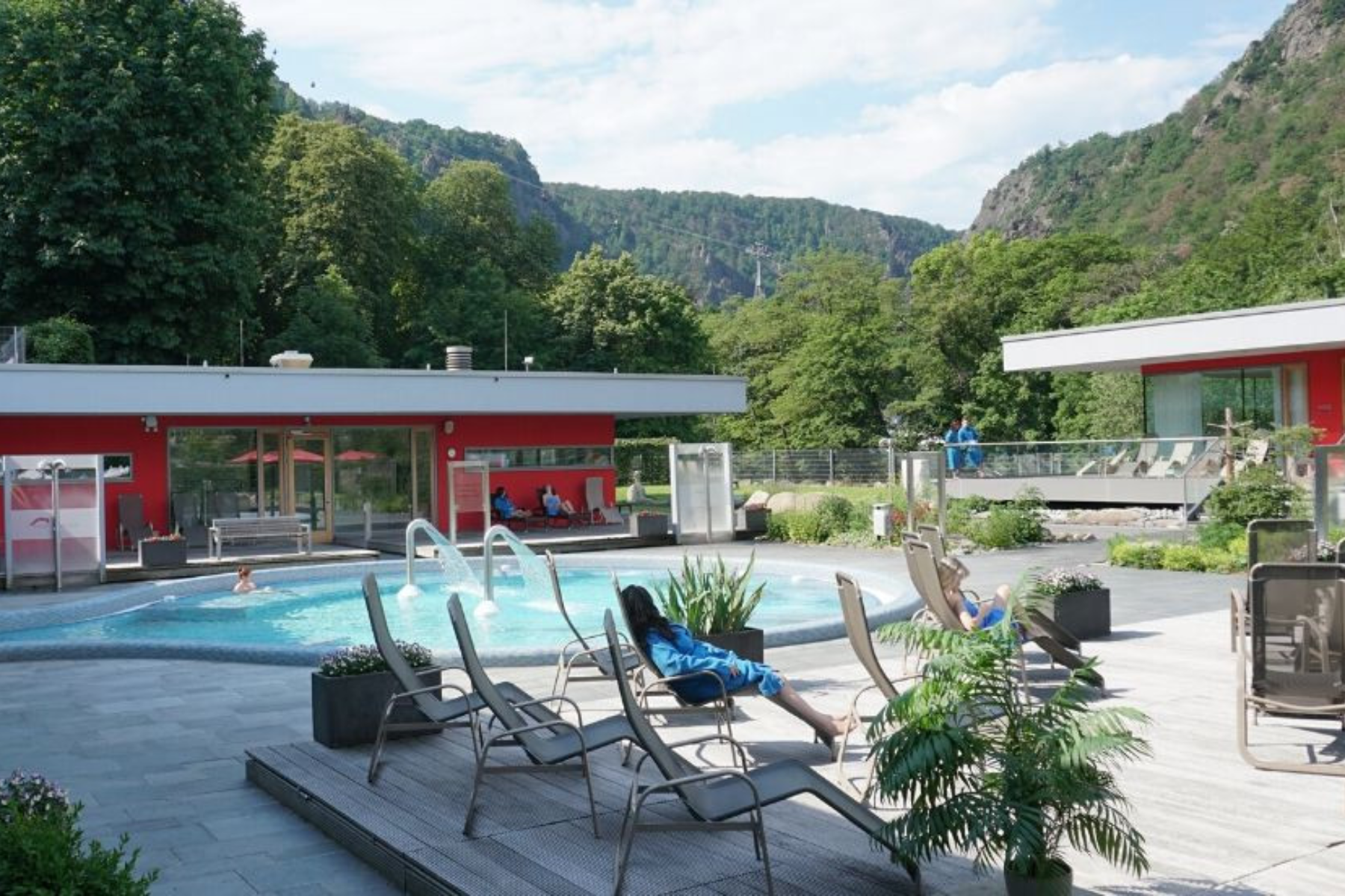 Schwimmen und auf die Berge blicken, drinnen oder draußen!