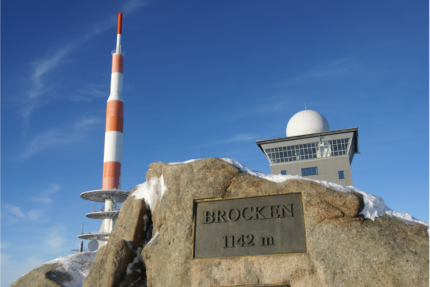 Due to the high altitude (1,141 m) of the Brocken summit above the natural tree line, you should be prepared for very sudden changes in weather and sometimes extreme weather conditions when visiting. High levels of precipitation, low temperatures and strong gusts of wind clearly distinguish the climatic conditions from the surrounding Upper Harz region. Even when the sun is shining, strong temperature fluctuations can await you at the top, which is why warm and weatherproof clothing is always recommended for the ascent. In addition to frequent storms on the summit plateau, the clouds of fog (approx. 300 foggy days per year) give the Brocken its mystical glamour. The sub-alpine climate that prevails here can best be compared to Icelandic climatic conditions, whereby the temperatures are usually very slow to climb into the double-digit range even in midsummer and the summit is almost permanently covered by a thick blanket of snow in winter. Apart from the strongly fluctuating temperatures, you should also be prepared for strong gusts of wind, as gale-force winds with wind speeds of up to 260 km/h prevail on the Brocken 100 days a year. Apart from the rather harsh weather conditions, there are pleasant temperatures full of sunshine on the Brocken on around six to seven days a year, which allows for a breathtaking panoramic view of the surrounding landscape stretching over 200 kilometres.