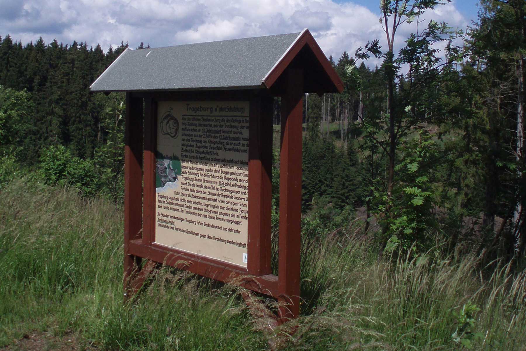 The Trageburg castle in the Harz Mountains is said to have been built as early as the 13th century and not only overlooked a trade route in the early Middle Ages, but was also intended to protect the surrounding areas and some mining areas. After that, information becomes sparse, and had it not been for some archaeologists, the castle could have remained undiscovered to this day. This is mainly due to the construction of the Rappbode barrier. It flooded a large part of the former castle and today no really large remains of the walls have survived. Only the layout of the terrain gives an idea of the dimensions of the former fortress.