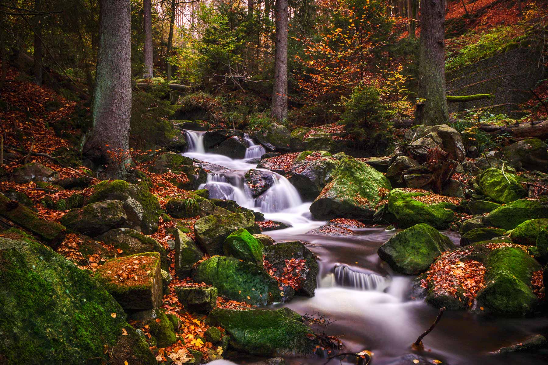 Impressive waterfalls in the wildly romantic Ilse Valley