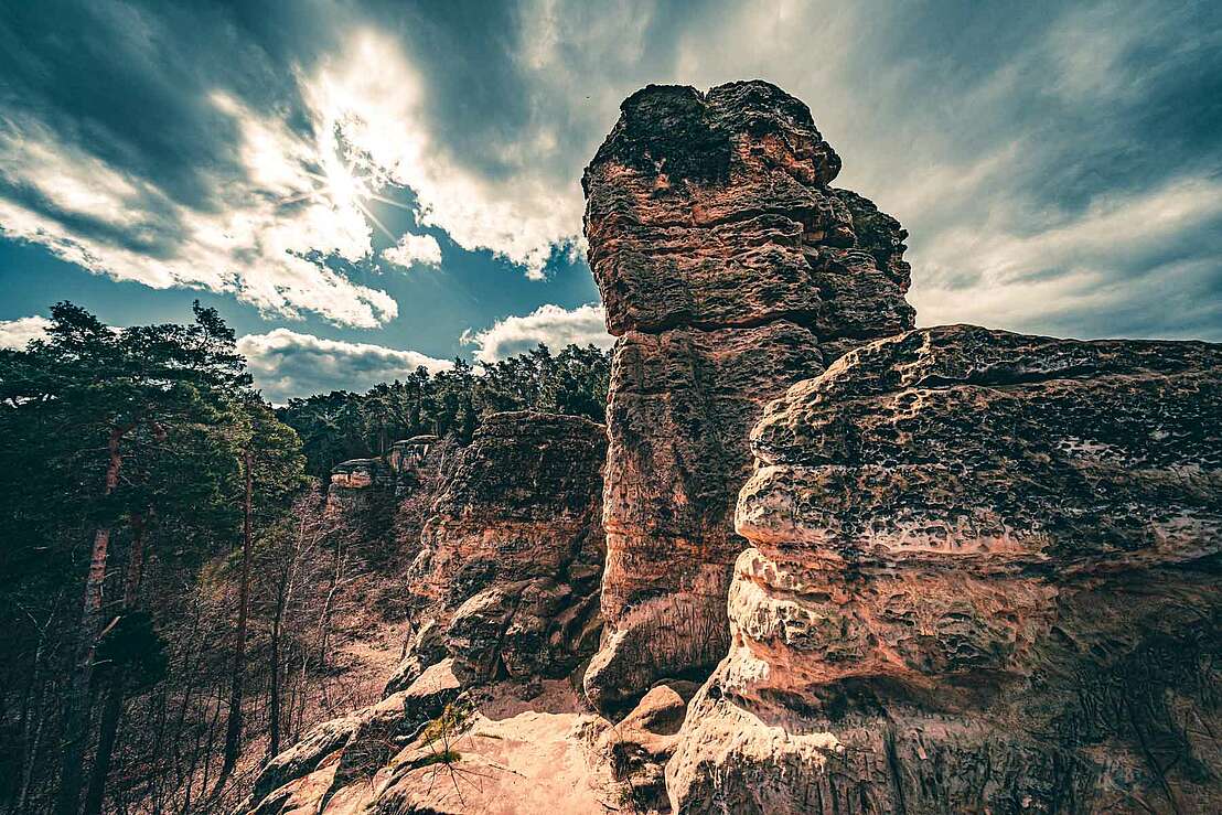 The sandstone from which the rocks near Halberstadt are made was formed 110 million years ago during the Lower Cretaceous in a shallow sea. In the Old Tertiary, which began 66 million years ago, the formed stone rose in layers. These vertical layers can still be seen today.