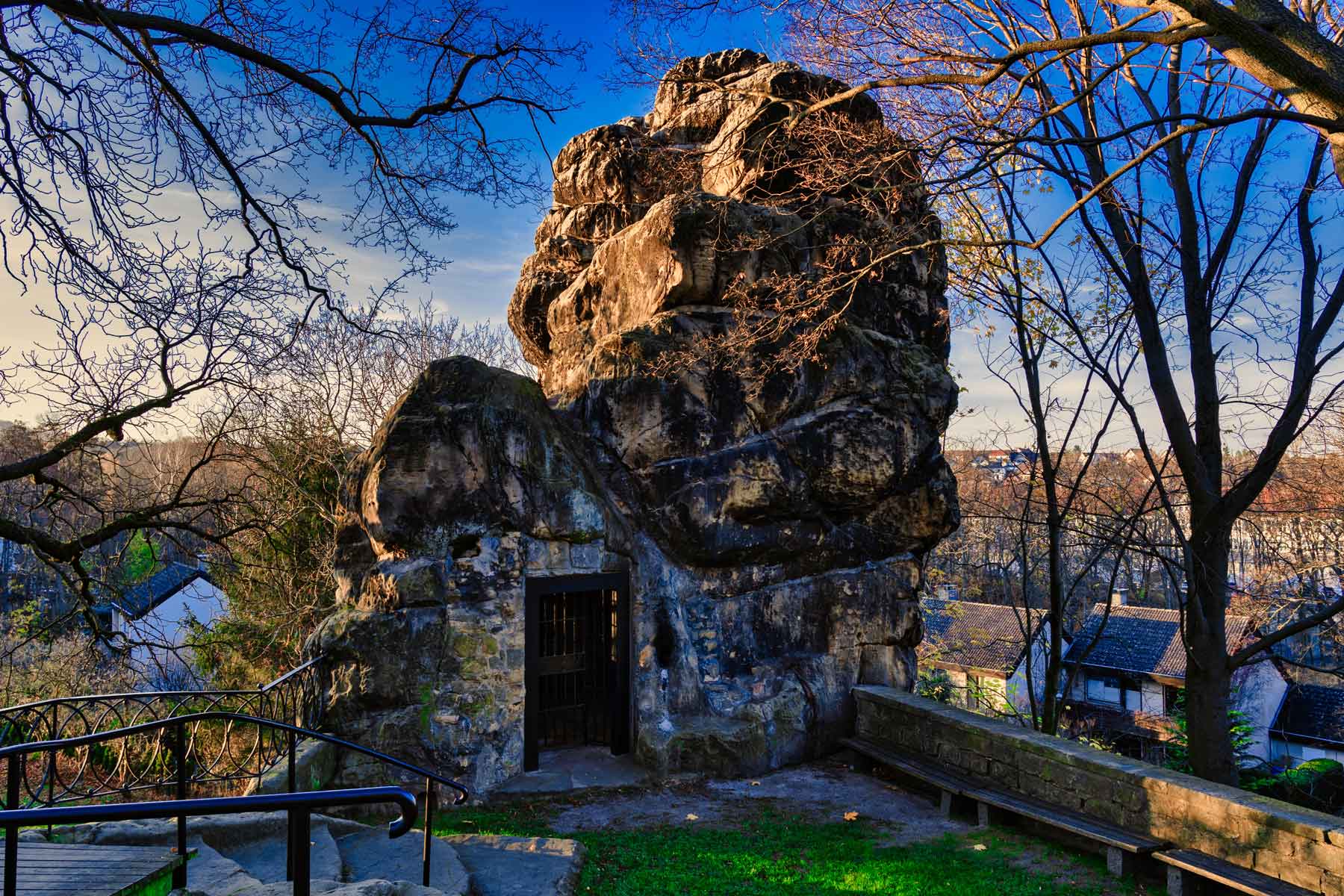 At that time, hermits were called Klausner, which is where the name of the rock comes from. But they were not the only ones who used the sandstone massif: In the caves you will find stonemasons' marks from the 15th century. This is because the stonemasons involved in the construction of Halberstadt Cathedral at that time met every Sunday in the cave system. Evidence from the early 16th century, shortly after the Reformation, shows that a brotherhood of shepherds and shepherdesses also lived there. At that time, the caves were no longer used as a chapel. However, this changed again at the beginning of the 19th century. In 1983, the chapel was even renovated.