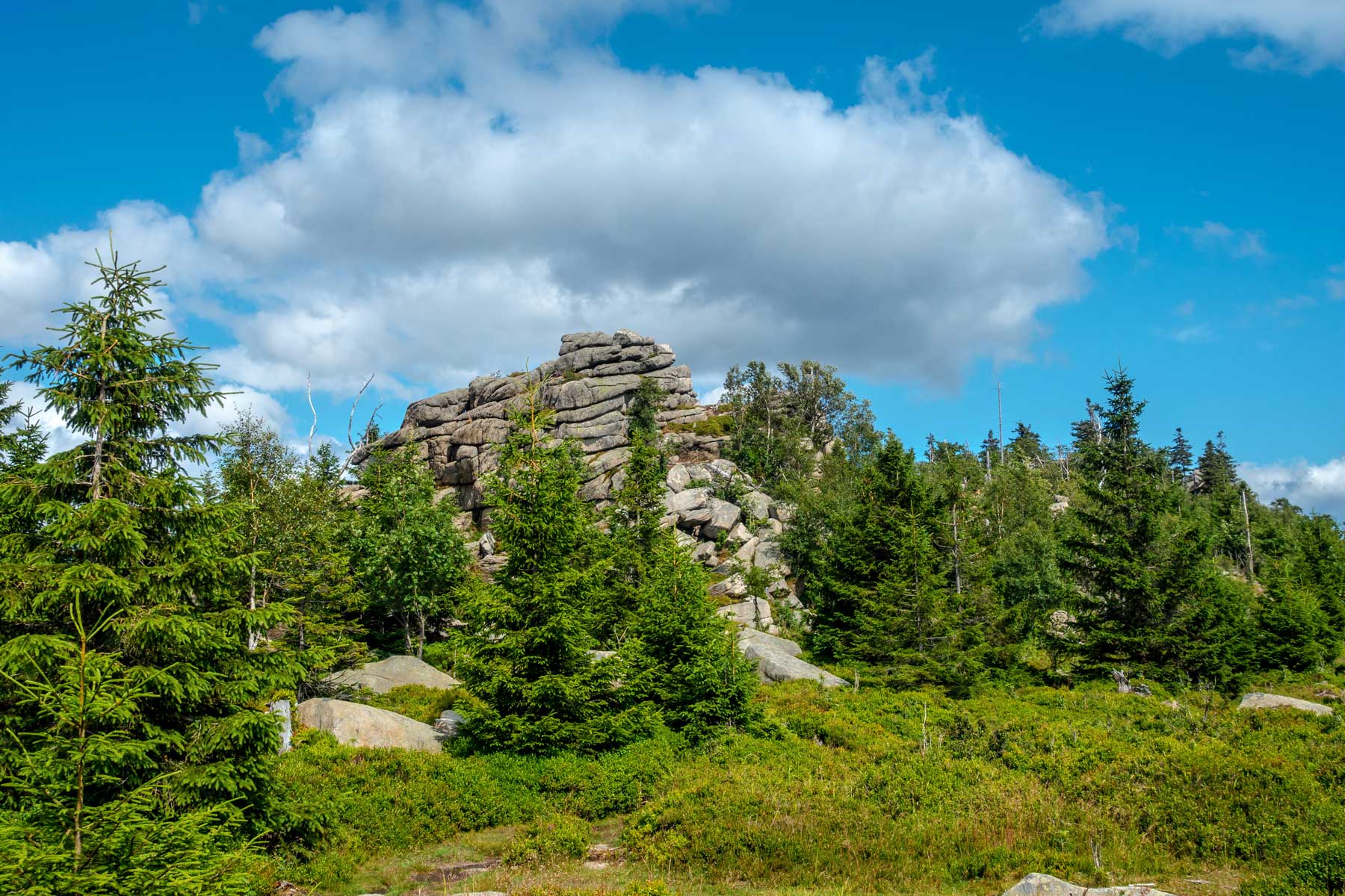 If you want to hike to the Leistenklippe, there are numerous starting points and paths. Popular starting points for a hike to the Hohnekamm cliff are Schierke and Drei Annen Hohne, although the route from Schierke is significantly shorter. From here it is just under three kilometres, with a total of 300 metres of altitude difference to overcome. However, a hike from Drei Annen Hohne railway station along the Glashüttenweg trail, which is around four kilometres long, is also highly recommended.