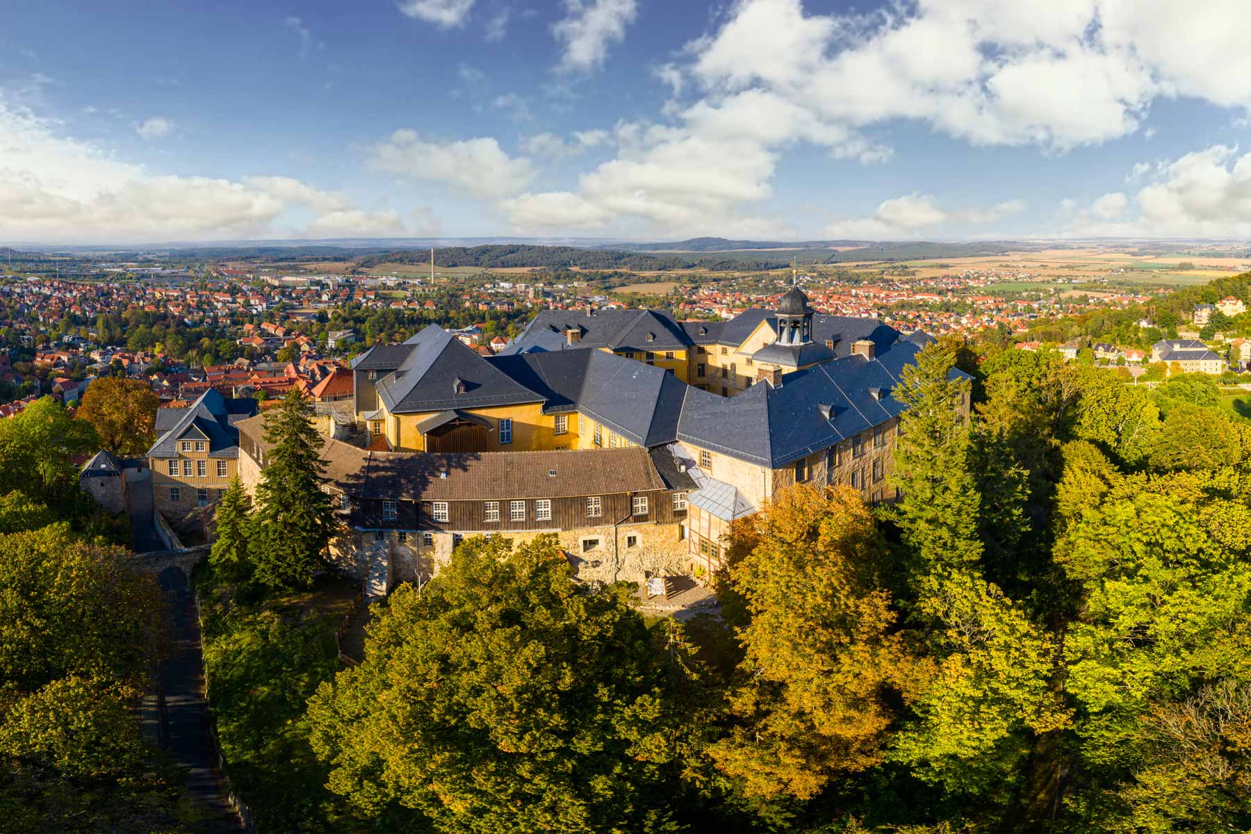 You reach the beautiful little town of Blankenburg, which bears the title of state-recognised health resort, in the district of Harz in Saxony-Anhalt. The ensemble of old town, fortification wall and castle is so idyllic that it is often used as a film set. Take your time and enjoy strolling through the wonderful old alleys. Here, beautiful shops, cafés and restaurants invite you to browse and stop for a bite to eat. A special highlight are the baroque gardens of the castle park, which consist of many different, partly terraced grounds. In addition to old churches and historic buildings, the town is also attractive because of its location in the midst of beautiful nature. This entices you to take long walks and discover magnificent vantage points. A tour to the nearby Großvater-Felsen (Grandfather Rock), from where you have a great view of the town and Blankenburg Castle, is particularly appealing.