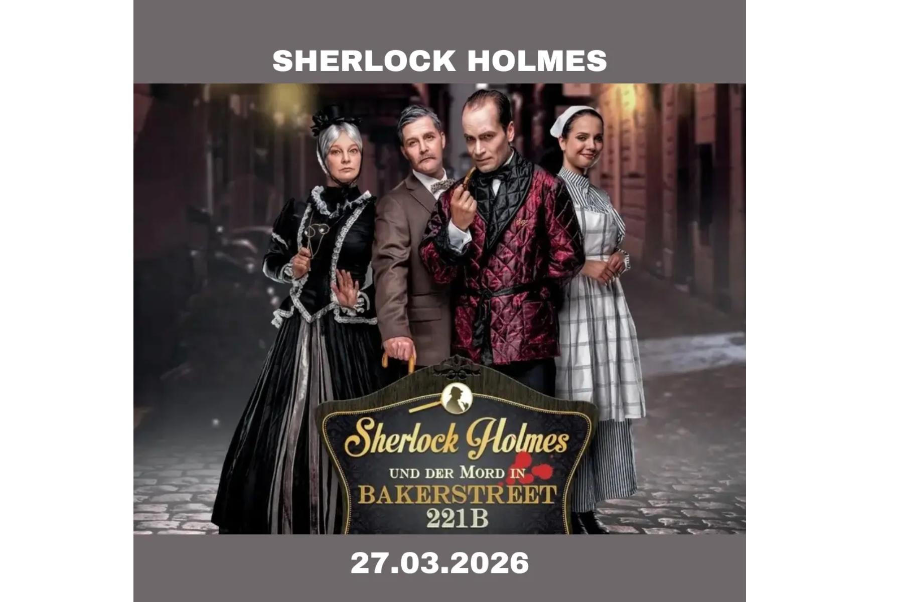 Experience an extraordinary murder mystery dinner on 27 March 2026: Sherlock Holmes and the murder at 221 B Baker Street. An evening full of suspense and enjoyment awaits you! While Holmes has to solve new cases, Dr Watson and Mrs Hudson disappear - and a murder shakes the detective's living room. For €99 you can enjoy a delicious 4-course menu and be there live as the famous investigator hunts down the culprit. Admission 19:00, start 19:30.