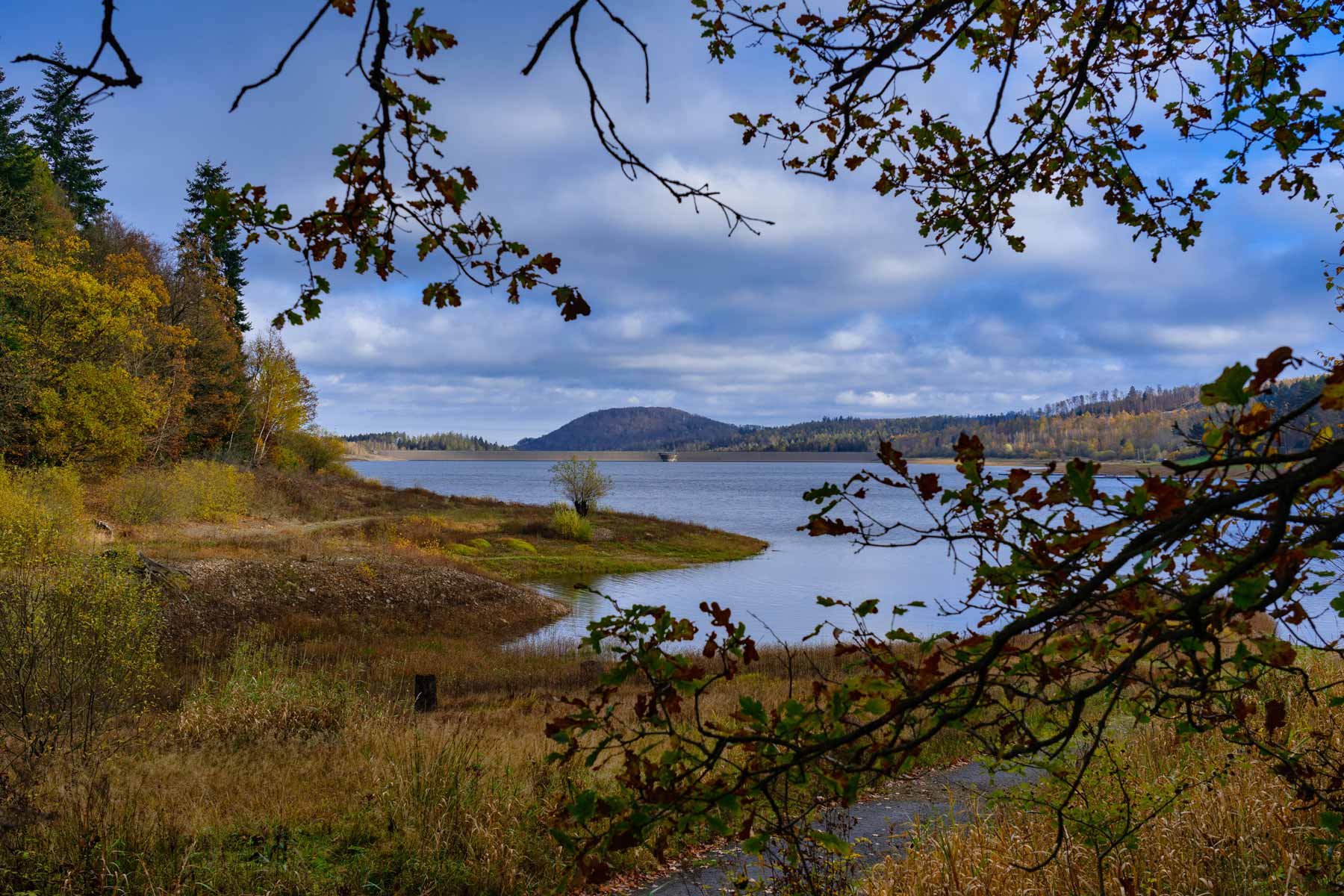 Im Jahre 1963 wurde mit dem Bau begonnen, worauf nach drei Jahren (1966) die Fertigstellung des mit 750 Metern längsten Staudamms im Harz folgte. Genau 40 Jahre später stand die Generalsanierung an, wozu das Wasser komplett abgelassen werden musste, um Spezialmaschinen am Damm abzuseilen und somit neuen Asphalt aufzubringen. Der 35 Meter hohe Staudamm selbst besitzt ein Volumen von 850.000 Kubikmetern und staut bis zu 19,26 Millionen Kubikmeter Wasser. Hinter dem bemerkenswerten Damm mit seiner Dichtung aus Asphaltbeton dehnt sich ein etwa drei Kilometer langer künstlicher See aus, der bei Vollstau eine Fläche von 139 Hektar einnimmt. Damit liegt der Spitzenreiter in Sachen Staudammlänge in Sachen Wasserfläche nur etwa im Mittelfeld der Harzgewässer.