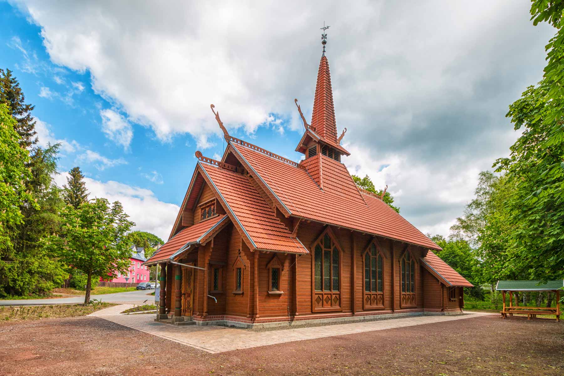 Im Herzen des Harzes, im kleinen Ort Stiege nahe der Stadt Hasselfelde, lässt sich ein einzigartiges sakrales Bauwerk bewundern: Eine kleine Kirche von außergewöhnlicher Bauart und Größe – die Stabkirche in Stiege. Einst als Kapelle der Lungenheilanstalt Albrechtshaus erbaut, erregt das denkmalgeschützte Gebäude durch seine auffällige Architektur und Bauweise schnell die Aufmerksamkeit von Wanderern, Touristen und Fotografen.