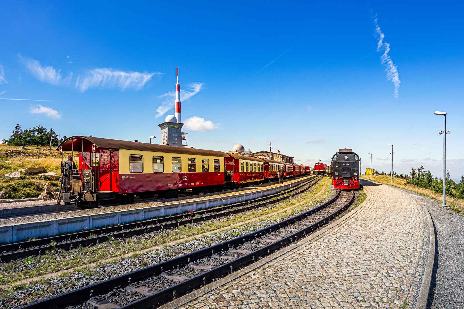 Leider sind insbesondere an dieser Stelle viele der Fichten dem Borkenkäfer zum Opfer gefallen, wodurch die Bäume abstarben und Stürmen und Wind nicht mehr standhielten. Die Flachwurzler kippten demnach um, weshalb viele Wurzeln heute in die Höhe ragen. Oben angekommen wartet die Brockenbahn als der höchste Bahnhof Deutschlands darauf, entdeckt zu werden.