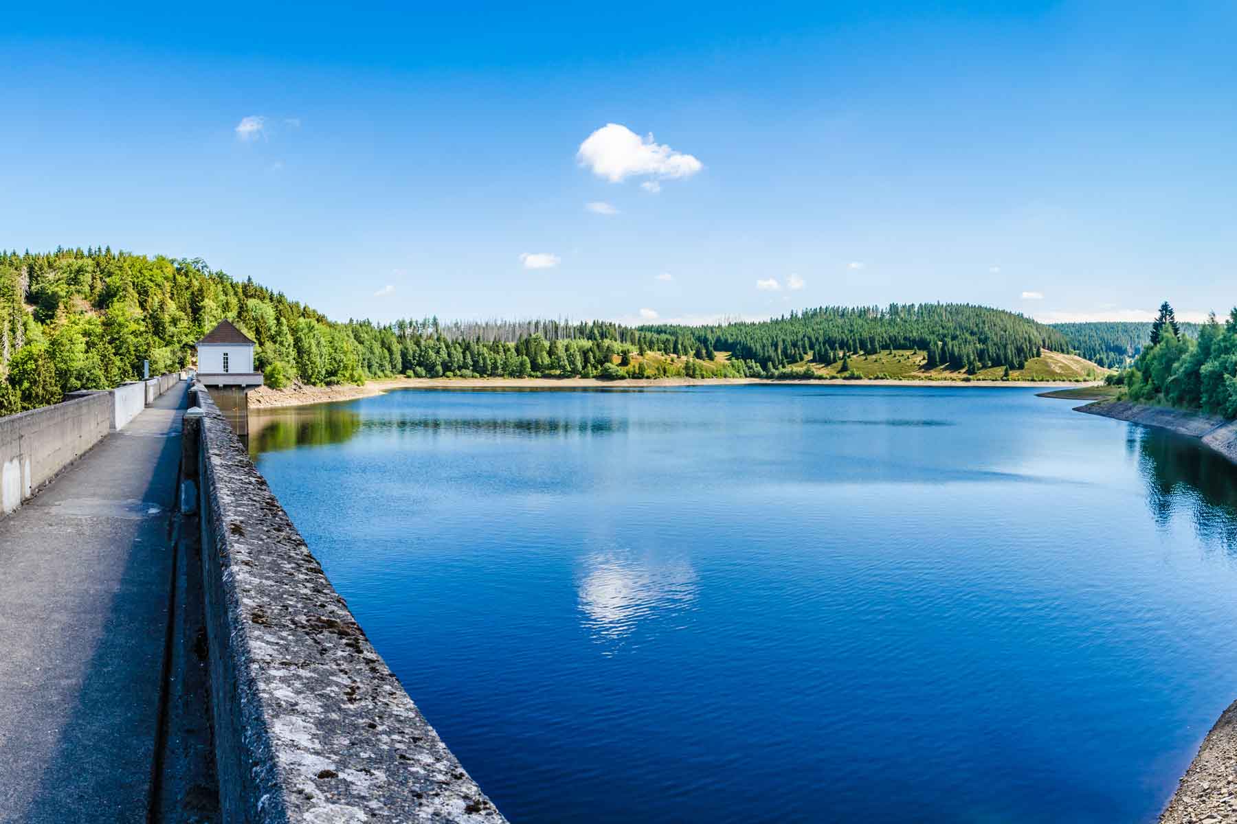 Dabei hält sie ein Gewicht von sage und schreibe 420.000 Tonnen Wasserdruck stand. Wie viele der anderen Stauseen im Harz dient auch dieser der Trinkwassergewinnung der Region Wolfsburg und Braunschweig, sowie dem Schutz vor Sommer- und Winterhochwasser sowie der Energieerzeugung.