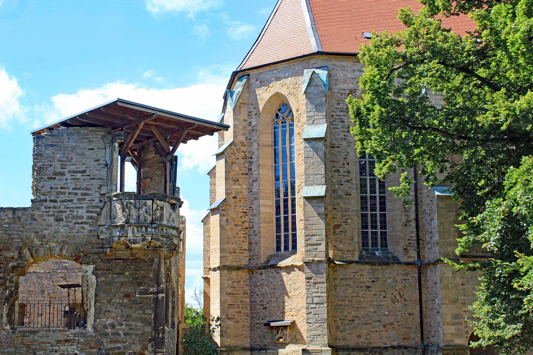 Auch die Heimatkirche Luthers St. Georg aus dem 14. Jahrhundert, die sich über das Tal Mansfeld zeugt von dem Wirken Martin Luthers und ist absolut sehenswert. In ihr erwartet Besucher neben Grabmalen der Grafen Mansfeld Altarretabeln aus der vorreformatorischen Zeit sowie ein Ganzkörper Portrait Luthers aus der Cranach Werkstatt. Beachtenswert ist außerdem die Empore mit 49 Bildtafeln sowie die kunstvollen Schnitzaltäre aus dem 15. Jahrhundert.