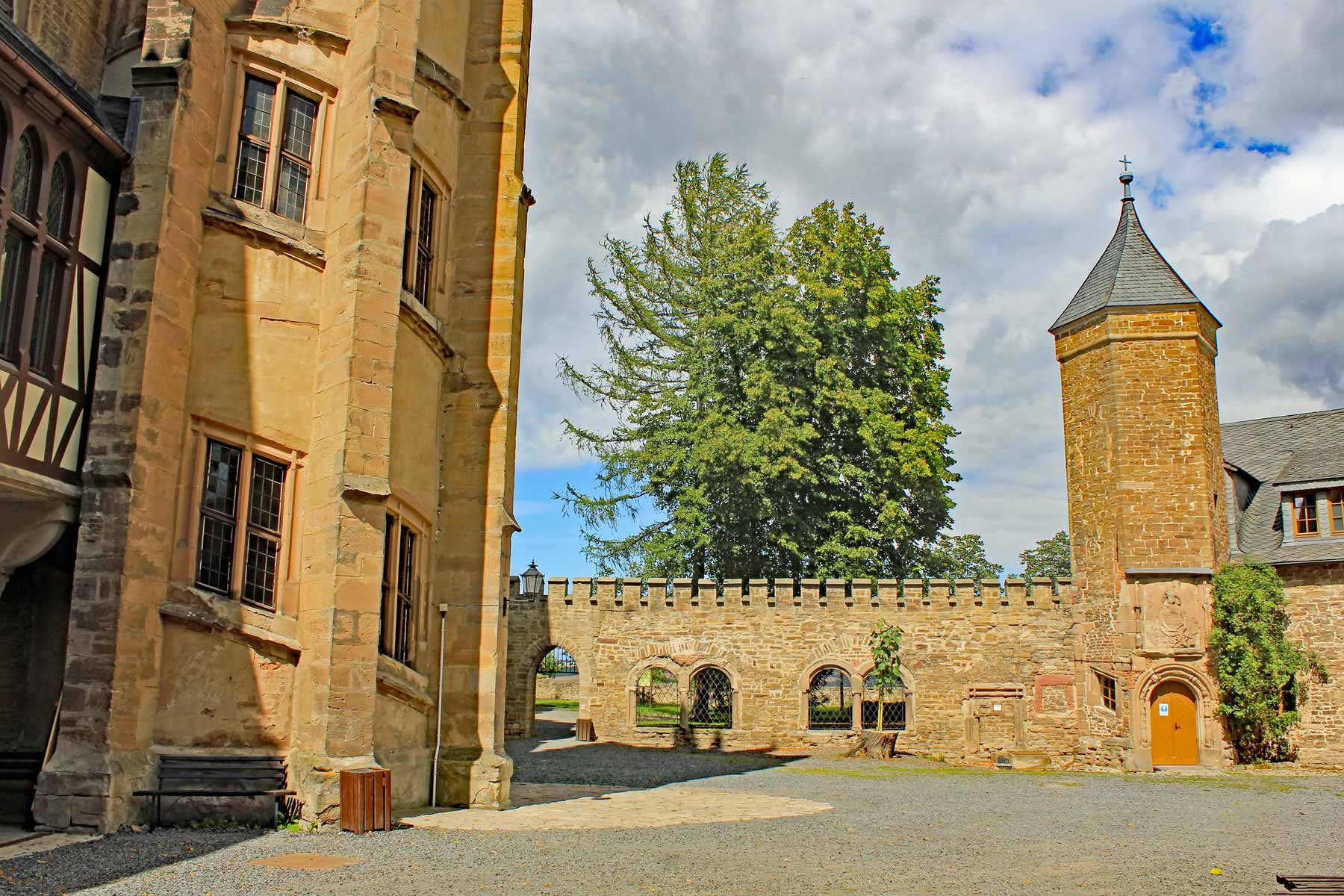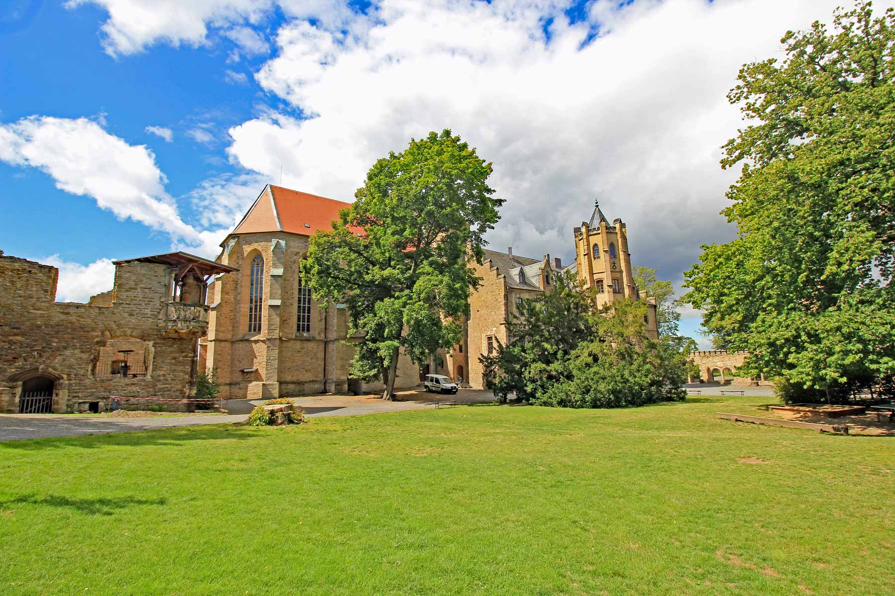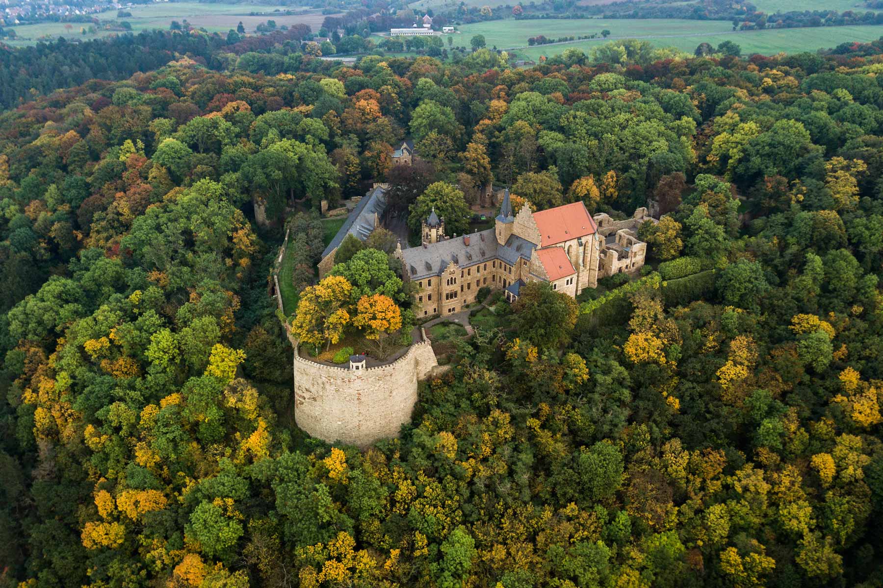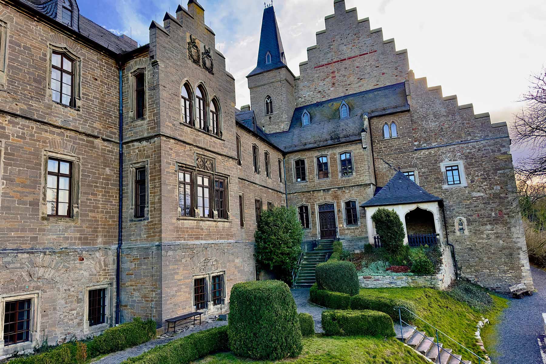 Hoch über der Stadt auf dem Schlossberg liegt das Schloss Mansfeld, welches seit dem 11. Jahrhundert der Sitz der Mansfelder Grafen war und erstmals im Jahr 1229 urkundlich erwähnt wurde. Zu Beginn des 16. Jahrhunderts spalteten sich die Grafen von Mansfeld in drei Linien auf und errichteten drei eindrucksvolle Renaissance-Schlösser, welche von für die damalige Zeit von modernsten Festungsanlagen umgeben waren: Mansfeld „Vorderort“, „Mittelort“ und „Hinterort“. Im Dreißigjährigen Krieg wird die Festung daraufhin belagert und in den Jahren 1674-75 geschleift, wobei die Schlösser selbst unversehrt bleiben, jedoch in der Folgezeit aufgrund des Bankrotts der Mansfelder verfallen. Das kirchliche Tagungsheim Schloss Mansfeld entstand schließlich im Jahr 1947 durch die Übergabe an die Evangelische Kirche. Seit 1999 betreibt hingegen der Förderverein Schloss Mansfeld e.V. in den altehrwürdigen Gemäuern bis heute die christliche Jugendbildungs- und Begegnungsstätte Schloss Mansfeld. Das Schloss bietet heute eine einzigartige Kulisse für Tagungen, Seminare, Klassenfahrten, Feierlichkeiten oder gar Trauungen im historischen Wintergarten.
