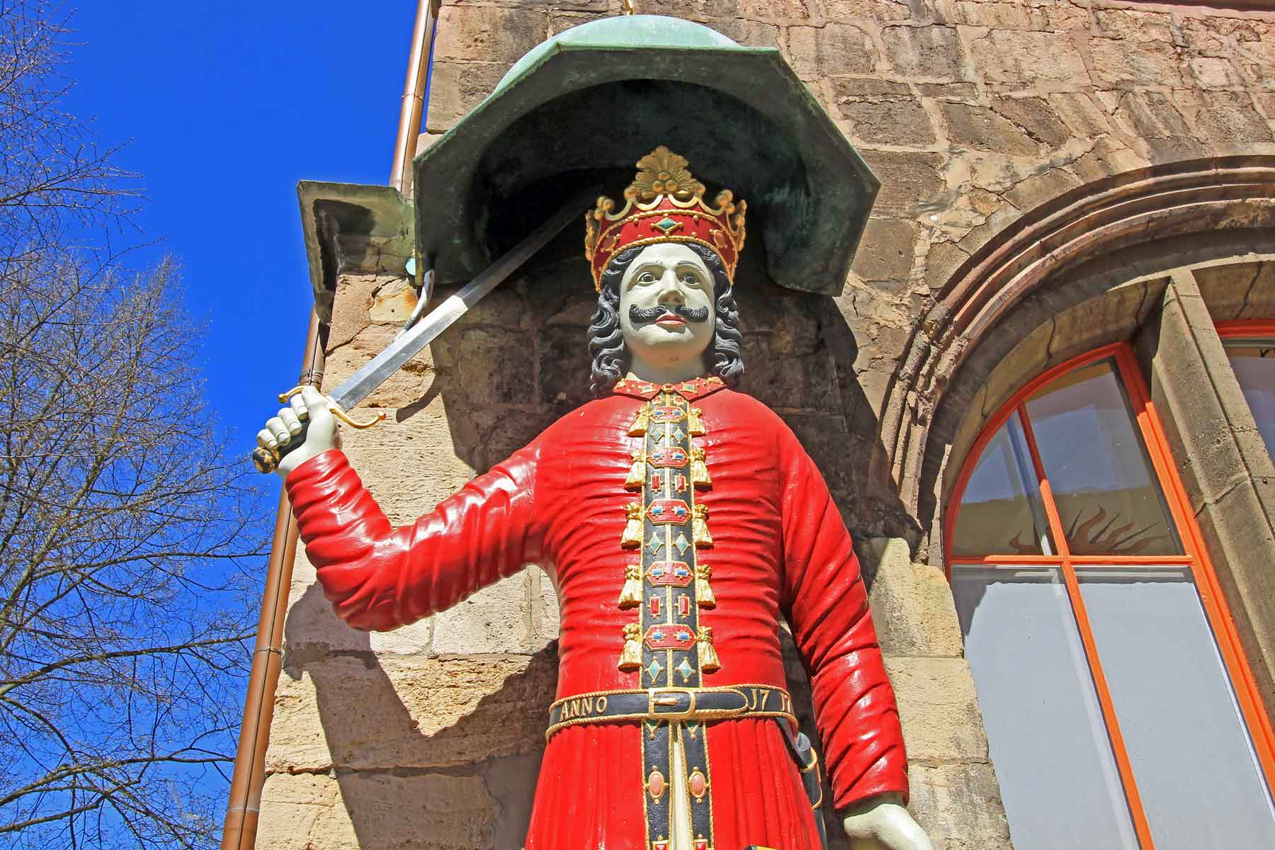 Das Wahrzeichen der Stadt Nordhausen ist der Roland. Seit 1411 steht die Holzstatue für Freiheit, Macht und Gerichtsbarkeit. Zu seinen Ehren begehen die Nordhäuser jährlich das Rolandsfest, das zahlreiche Besucher anlockt.