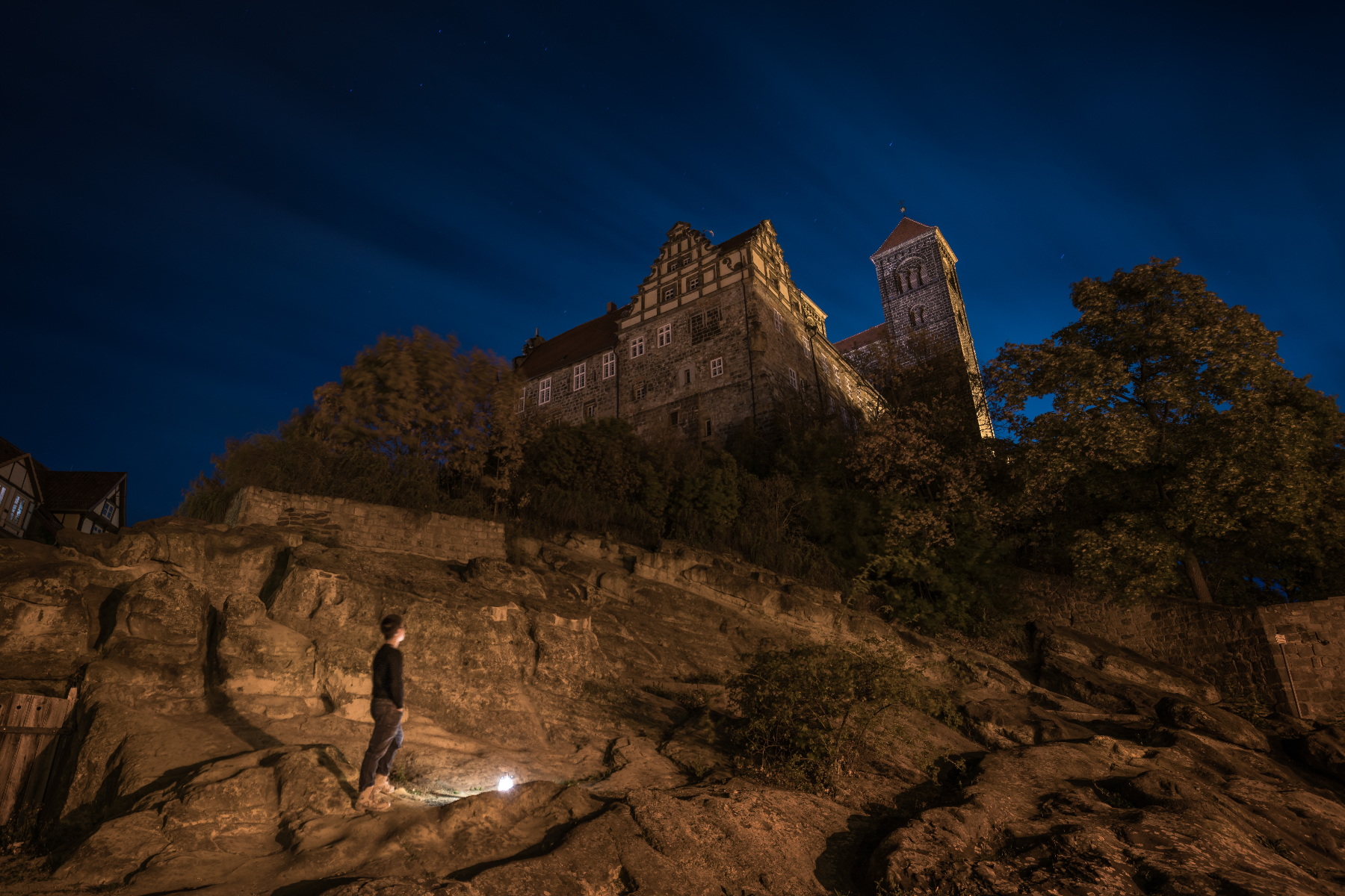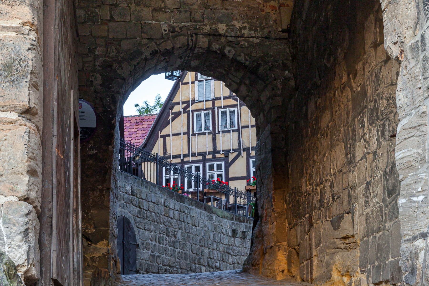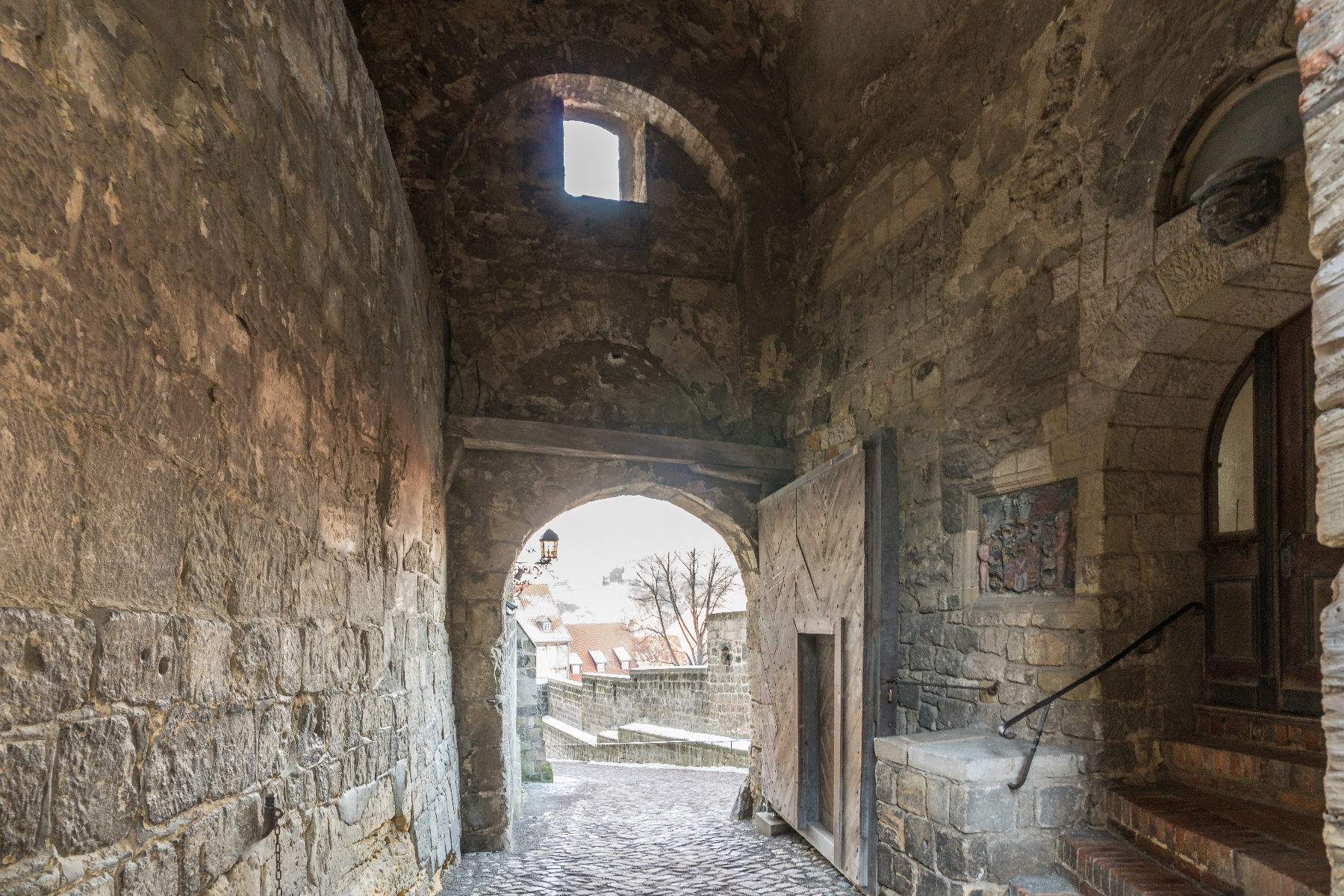 1994 hatte sich der beharrliche, seit 1989 wirkende Bürgerwiderstand gegen einen irreparablen Abbruch eines Großteils der Quedlinburger Altstadt ausgezahlt. Die Stadt wurde mit ihren rund 2000 Fachwerkhäusern aus sechs Jahrhunderten und ihrem Schlossberg in die Liste der UNESCO-Welterbe-Stätten aufgenommen. So findet die Mehrheit der Besucher ihren Weg heute hoch zum Schloss durch ebendiese hart erkämpften Altstadtgassen Quedlinburgs und passiert dabei zwei Burgtore, die den mühseligen Aufstieg als Etappenziel belohnen. Das Schloss Quedlinburg ist folglich kein Solitär, der in flacher Landschaft bewundert werden kann, sondern ein Konglomerat aus Stiftskirche, Fachwerkhäusern und Schlossräumlichkeiten, die untrennbar miteinander verbunden weithin sichtbar über der Stadt auf einem 30 Meter hohen Sandsteinfelsen thronen.