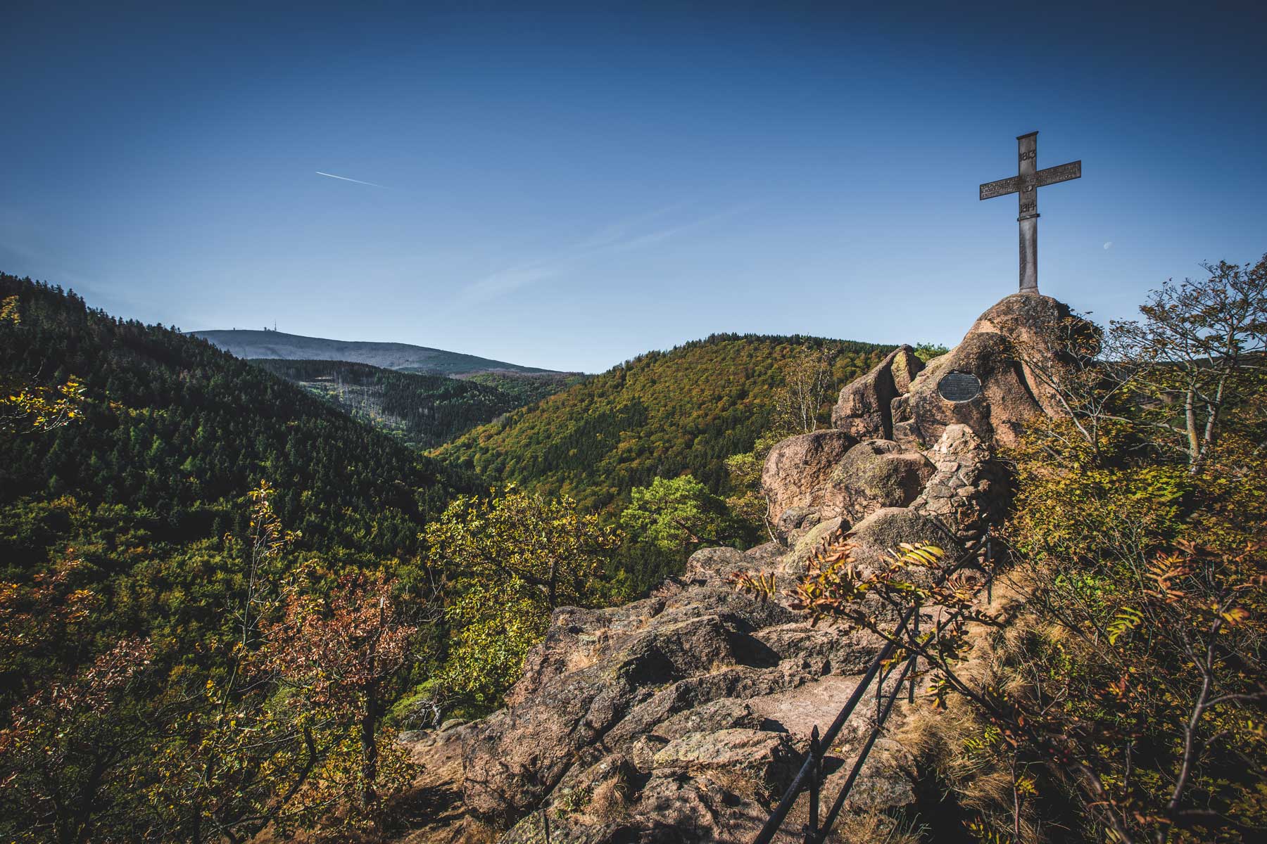 Gut ausgeruht geht es schließlich weiter entlang des Weges woraufhin nach einem weiteren Kilometer schon die Stempelstelle Nummer 9 an der Stempelsbuche wartet. Die namensgebende und einst prächtige Buche existiert jedoch leider nicht mehr, weshalb nur noch der übriggebliebene Baumstumpf an sie erinnert. Mit Erreichen des Hirtenstiegs, einem ehemaligen Grenzweg, beginnt der eigentliche Aufstieg auf den Brocken. Hier lässt sich die zum Teil mehr als 50 Jahre lang unberührte Natur aus nächster Nähe erleben. Auch die schließlich folgenden Bismarck-Klippen stellen dank ihres einzigartigen Ausblicks auf das nördliche Harzvorland und die Eckertalsperre ein besonderes Highlight der Wanderung dar.