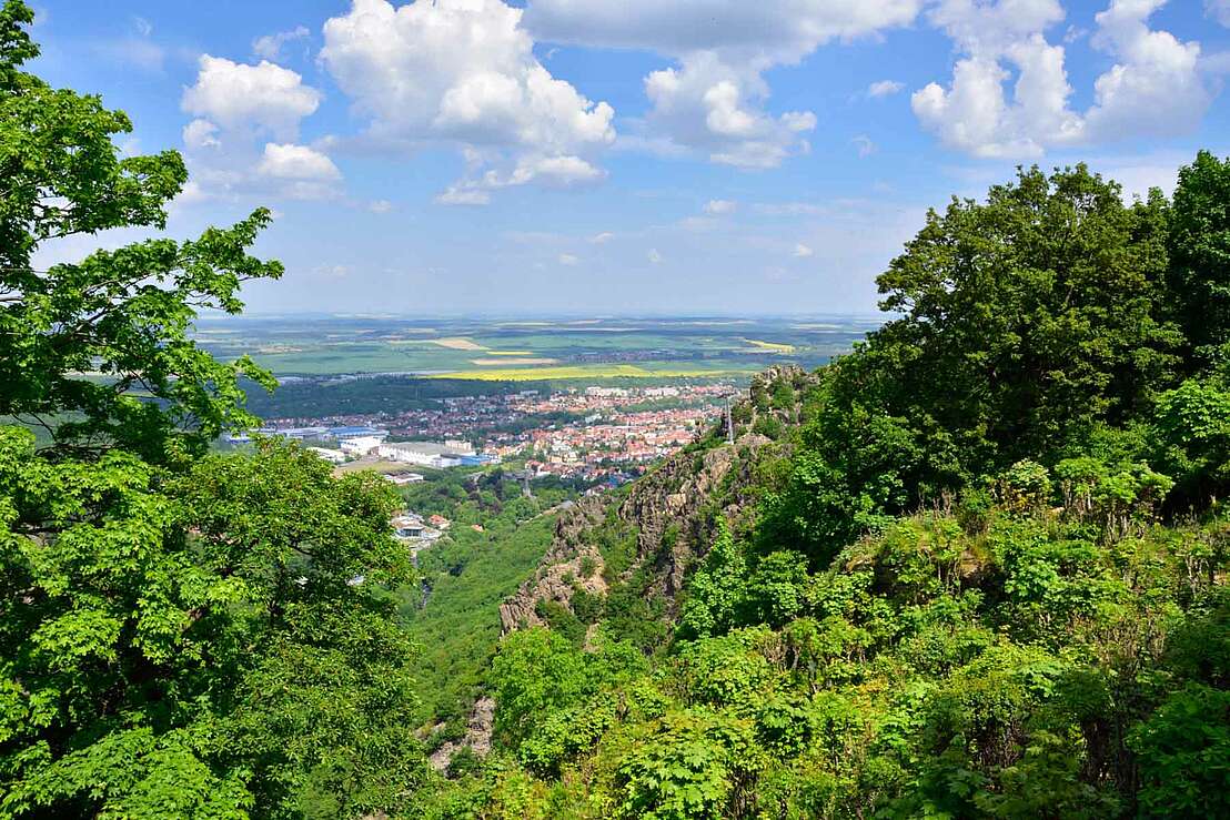 Nächstes Highlight auf Höhe des Parkplatzes am Hexentanzplatz ist ein weiterer bekannter Aussichtspunkt, der Bodetalblick. Dem Namen ist im Grunde nichts weiter hinzuzufügen, denn er bietet eingebettet in die Natur einen wundervollen Ausblick auf die malerische Landschaft und die kahlen Felswände. Nach dem nächsten Aussichtspunkt Bodetal / Thale führt die Wanderung auf gleichem Weg wieder über einen nördlichen Bogen zurück zum Parkplatz.