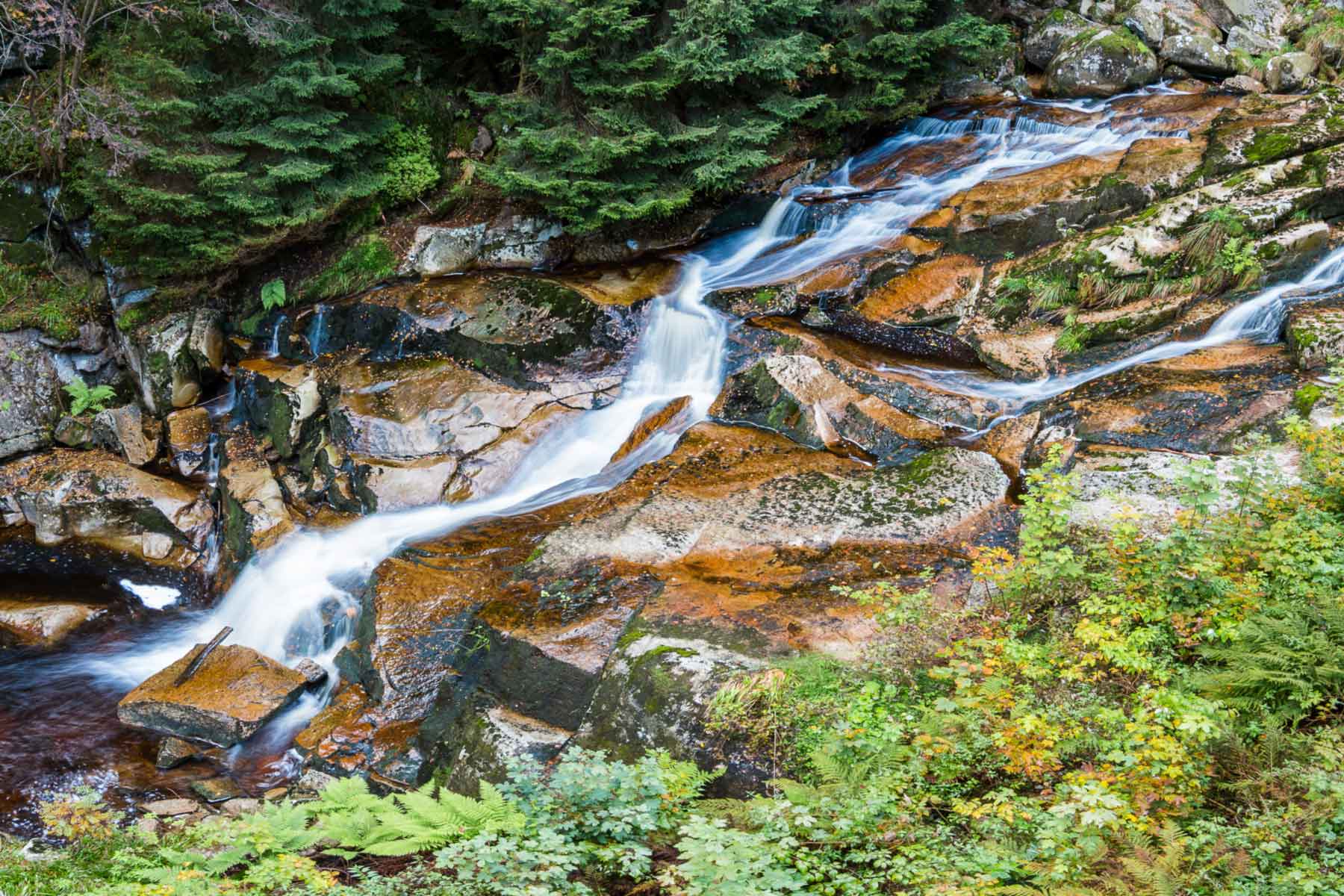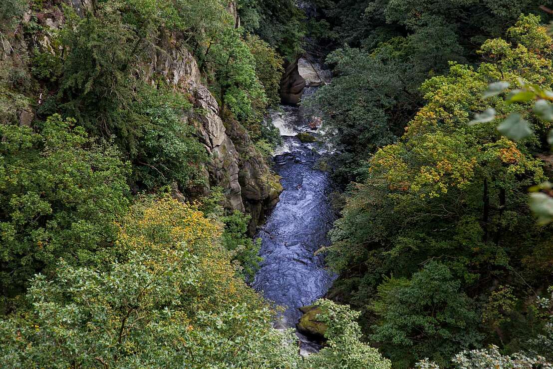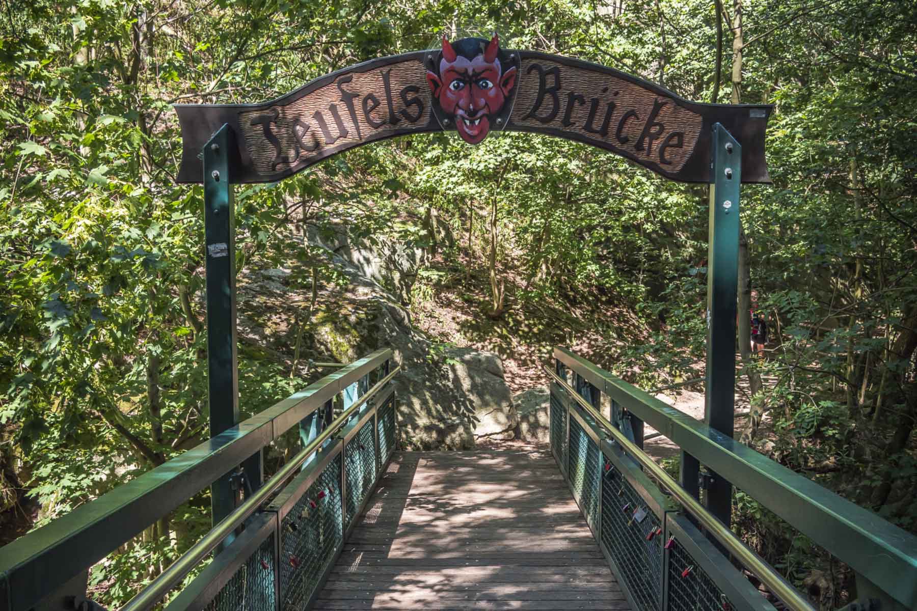 Wanderer laufen zunächst in Richtung Norden, wenden dann auf Höhe Rosstrappe downhill und gelangen nach 4 Kilometern ab Wanderstart zum Wanderweg an der Bode. Hier lässt sich die schönste Natur sowie die Sonne genießen und man kann die Seele baumeln lassen. Weiter geht es entlang der Bode vorbei an Königsruhe zur Teufelsbrücke. Über sie lässt sich die Bode bequem überqueren, sie ist zudem eines der Wander Highlights im Harz schlechthin und symbolisiert für Mensch und Fluss die Rückkehr auf zivilisiertes Gelände. Nur wenig weiter hört man im Bodekessel die Bode wuchtig durch die Felsen strömen – einfach atemberaubend. Nicht umsonst wird der Bodekessel häufig auch scherzhaft der „kleine Grand Canyon“ Deutschlands genannt.