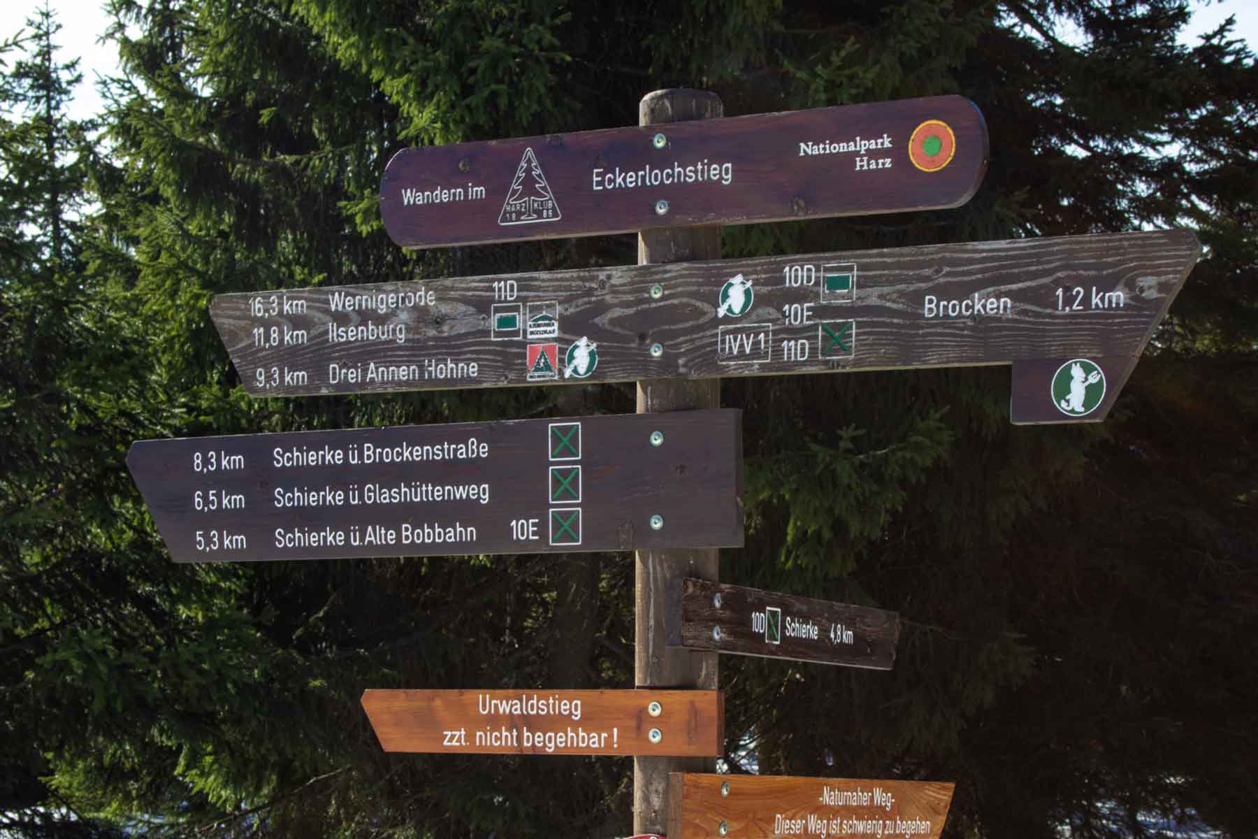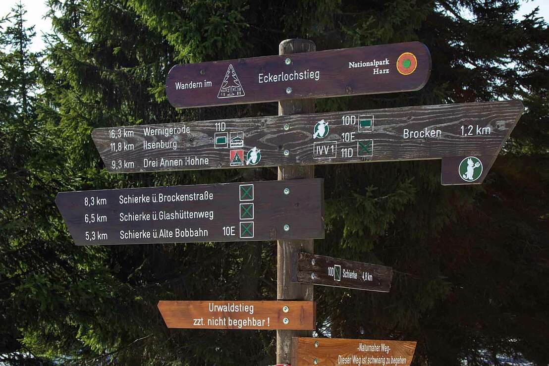 Was folgt ist der der Eckerlochstieg, dessen Aufstieg nicht ganz unbeschwerlich ist, hier ist Trittfestigkeit gefragt! Wer sich vor dem anspruchsvollen Wanderweg ein Weilchen ausruhen will, kann den Rastplatz zum Verweilen nutzen. Wer den verwurzelten Weg sowie die Schlammlöcher auf sich nimmt wird mit einer äußerst natürlichen Wanderstrecke belohnt – über Stock und Stein geht es hier in Richtung Brockengipfel.