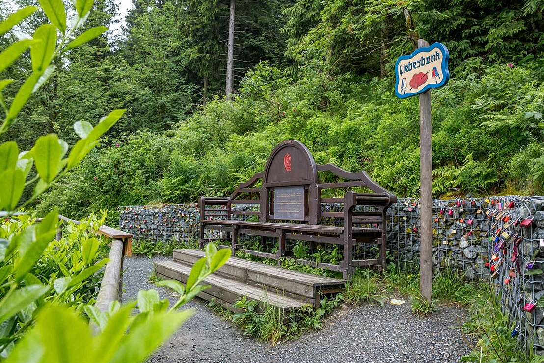 Wer noch mehr romantische Zeit mit seinem/seiner Partner/in verbringen möchte, dem wird das nächste Highlight dieses Wanderweges besonders gefallen: Die sogenannte „Verlobungs-Bank“. Die auf dem Liebesbankweg gelegene Bank eignet sich als perfektes Fotomotiv, an ihr haben schon etliche Liebes-Schlösser ihren Platz gefunden.