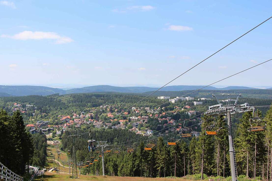 Nach ca. 1,5 km der Wanderroute entlang folgt der Blick auf Hahnenklee. Die Stelle bietet sich ideal als Rastmöglichkeit an.