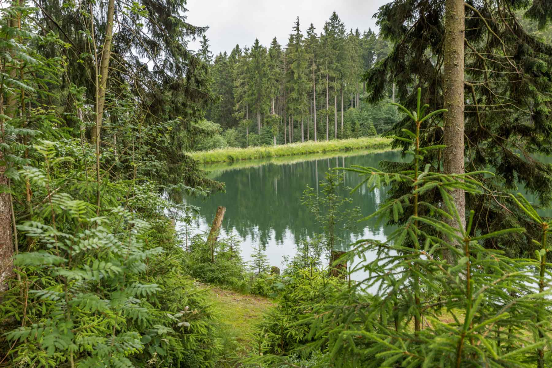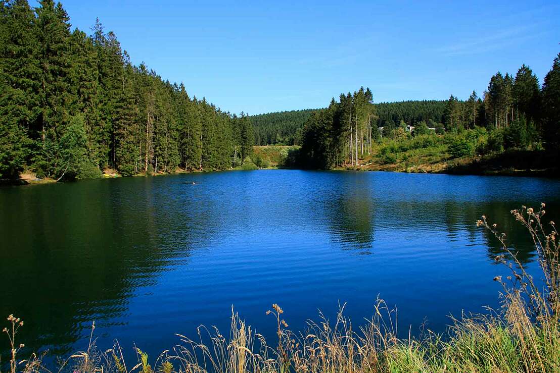 Was nun folgt sind die zuvor angesprochenen südlich gelegenen Grumbacher Teiche. Der obere als auch der mittlere Grumbacher Teich laden mit zahlreichen entlang des Weges gelegenen Bänken ebenfalls zum Rasten ein und bestechen durch ein wunderschönen Ausblick auf das Wasser. Wer genauer hinsieht kann von hier aus zudem die Harzer Gondeln sehen, welche auf die Spitze des Bocksberges führen. Die Wanderung führt weiter am östlichen Rand von Bockswiese entlang und endet wo sie gestartet ist, in Hahnenklee.