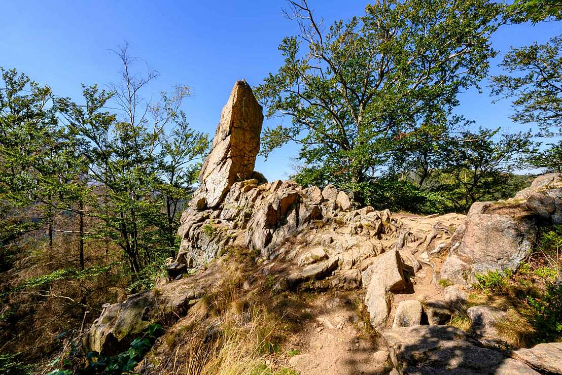 Noch etwa drei Kilometer vom ursprünglichen Startpunkt in Ilsenburg entfernt, erhebt sich schließlich hoch über dem Ilsetal der sagenumwobene Ilsestein. Das grußeiserne Kreuz kennzeichnet den in 474 Metern Höhe gelegenen Gipfel von welchem bereits Heinrich Heine schwärmte. Oben angekommen ist jedoch Vorsicht geboten, da die Klippe hinunter zum Tal nicht mit einem Geländer oder dergleichen gesichert ist. Über den weiteren Verlauf des Weges führt die Route schließlich wieder zurück nach unten in das Ilsetal von wo aus es wieder zurück in Richtung Ilsenburg geht.
