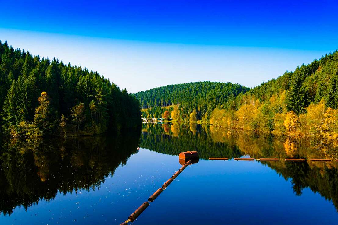 Noch ein Stück weiter entlang der Oker nördlich liegt das Ausgleichsbecken der Okertalsperre. Das Ausgleichsbecken ist die Vorsperre der größeren (zuvor gesehenen) Okertalsperre und lädt dank den bis an das Ufer wachsenden Bäumen sowie dem tollen Panorama zum verweilen ein. Nach etwas weniger als 10 Kilometern nach Wanderstart, erscheint schließlich die Marienwand. Die Felswand lockt vor allem in Sommermonaten Kletterer an, welche sich an ihr herunter abseilen. Wer will kann hier also selbst aktiv werden oder entspannt den Profis beim klettern zusehen.
