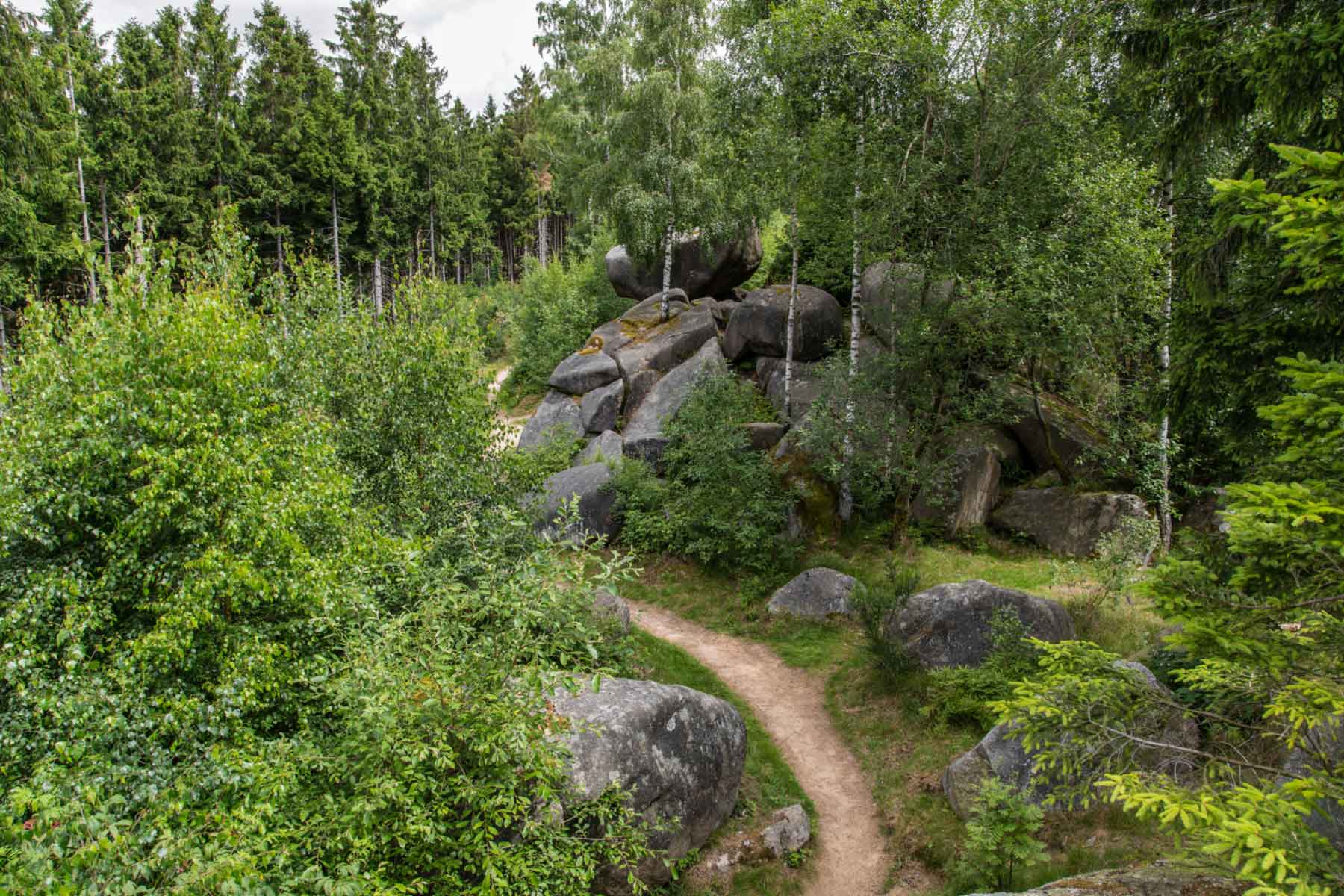 Ein paar hundert Meter weiter erscheint die sogenannte „Hexenküche“. Die witterungsbedingte Felsformation besteht aus festen Granitfelsen, die eine sehenswerte Konstellation bilden. Ein ähnliches Highlight ist die wenig weiter gelegene Mausefalle, die der Hexenküche ähnlich sieht und Ihren Namen aufgrund eines großen Felsens trägt, welcher seit Jahrhunderten von einem wesentlich kleineren gestützt wird. Der obere Granitbrocken liegt besondern nah am Rand, als würde die Mausefalle bald zuschnappen.