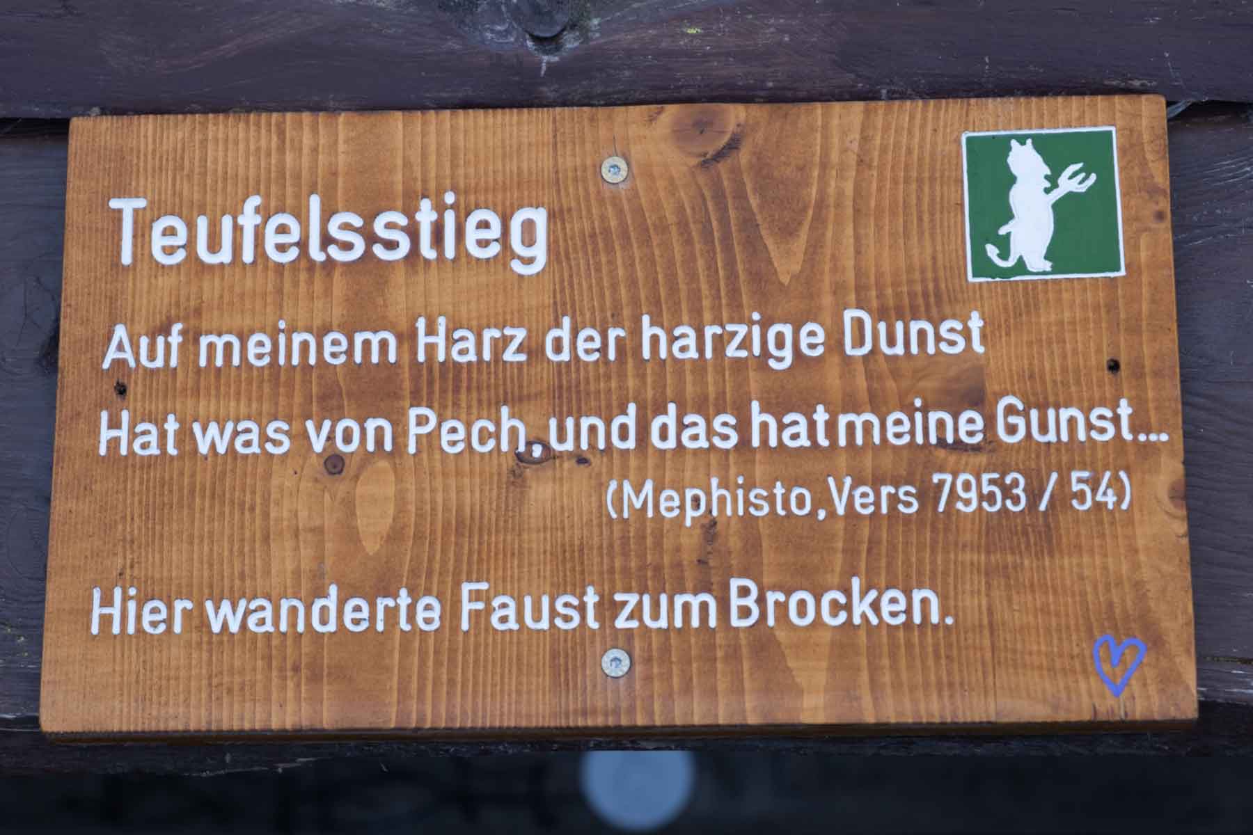 Noch weiter nördlich folgt nach ca. 7,3 Kilometern der Eingang Teufelsstieg, welcher mit seinen großen Steinen auf dem Weg nicht ganz leicht zu überwinden ist. Trittsicherheit und festes Schuhwerk und ausreichende Kondition machen sich hier bezahlt. Eine der Sehenswürdigkeiten im Harz schlechthin ist die darauffolgende sagenumwobene Brockenbahn. Seit Juli 1992 können Gäste den höchsten Gipfel Norddeutschlands per Brockenbahn erklimmen. Nostalgie pur…