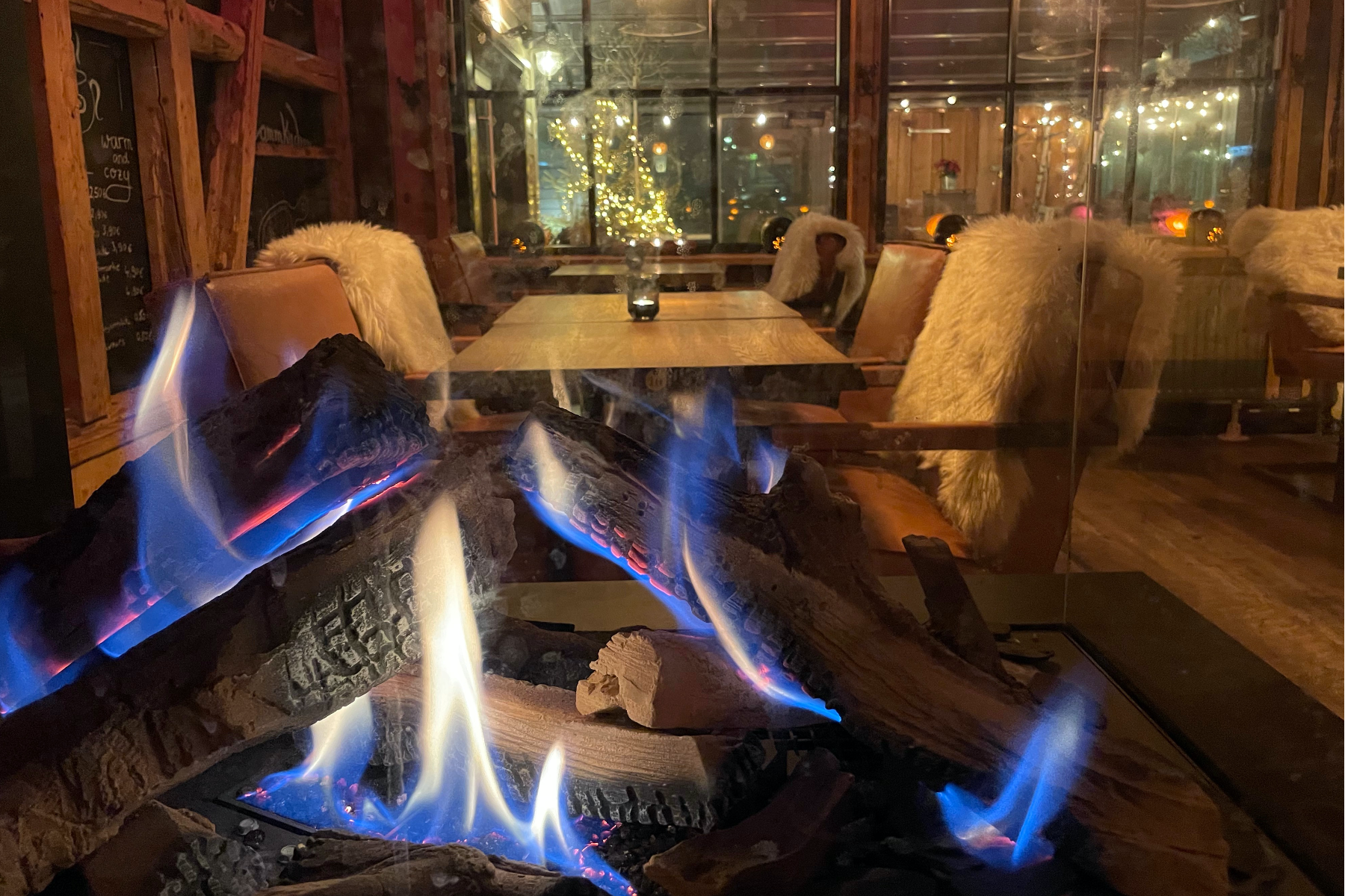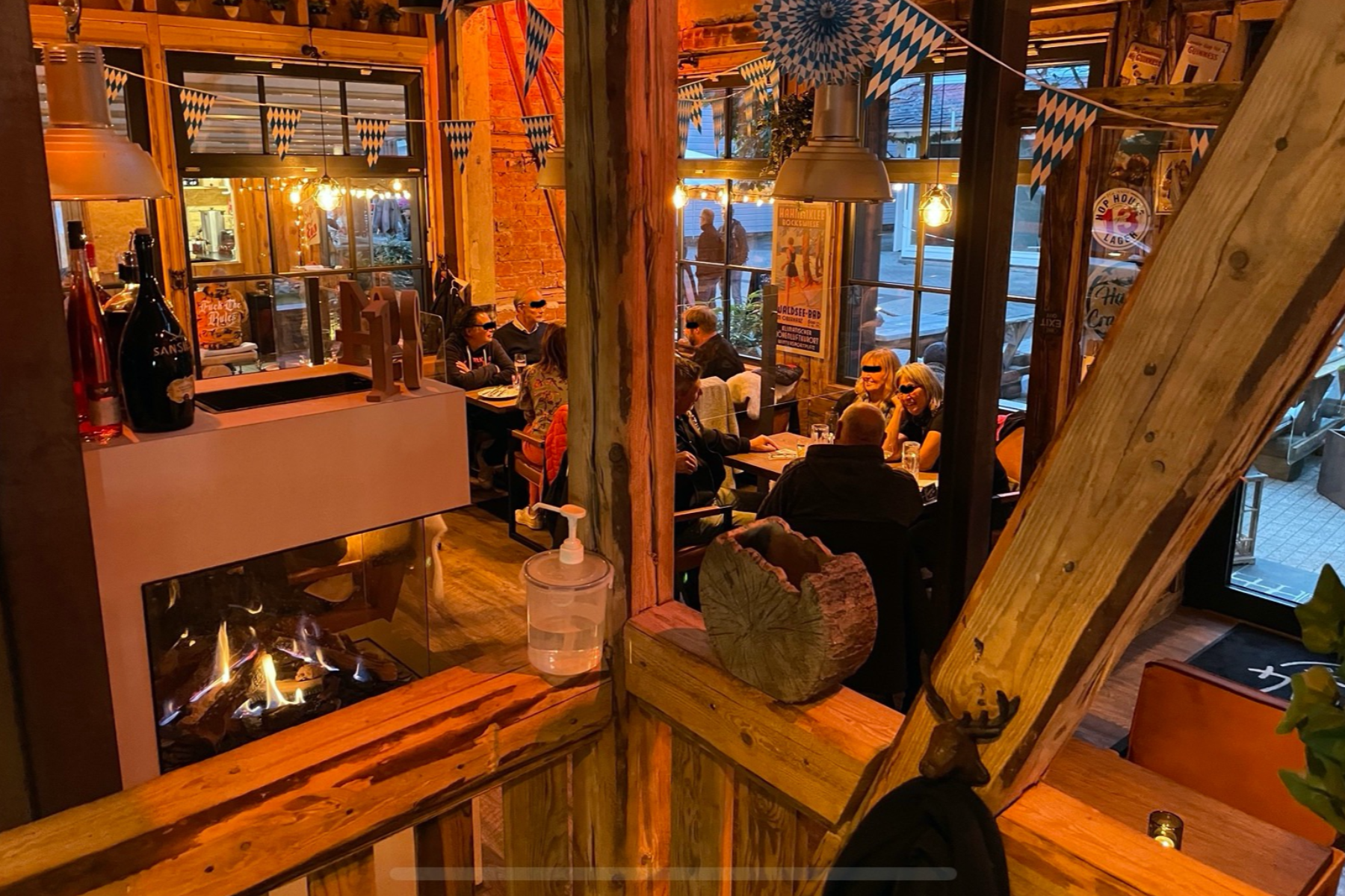 Wir bieten viele leckere Gerichte und Snacks sowie ein gemütliches Umfeld mit Kamin und einem alten Fachwerkhaus-Stil an.