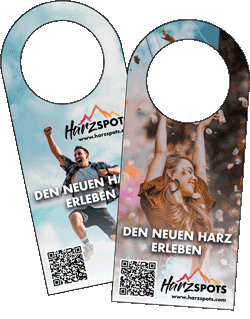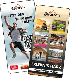 Als Harzspotspartner können Sie diese im praktischen Handyformat gestalteten Werbeflyer bei uns kostenfrei anfordern. Sie eignen sich nicht nur für die Positionierung an den o.g. Orten - zahlreiche Hotels und Restaurants legen sie gerne der Rechnung bei oder geben sie direkt an den Gast aus.