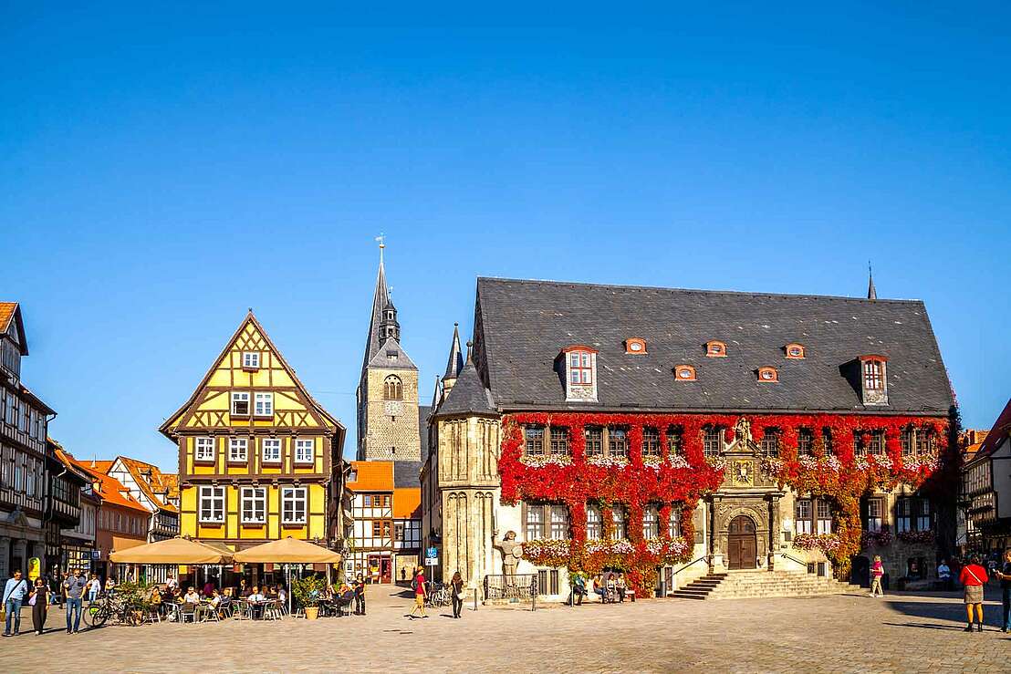 De route gaat verder langs de legendarische Duivelsmuur naar de stad Quedlinburg verder naar het noorden. Hier kun je de prachtige historische oude stad ontdekken met zijn gerestaureerde vakwerkhuizen, het stadhuis en het marktplein van Quedlinburg . Het stadhuis aan de noordkant van het marktplein is nog steeds het administratieve centrum van de stad en vormt samen met het marktplein het centrum van Quedlinburg. In het levendige centrum van de stad, die op de Werelderfgoedlijst van UNESCO staat, zijn er ook op elke hoek goede plekken om te stoppen voor een verfrissing.