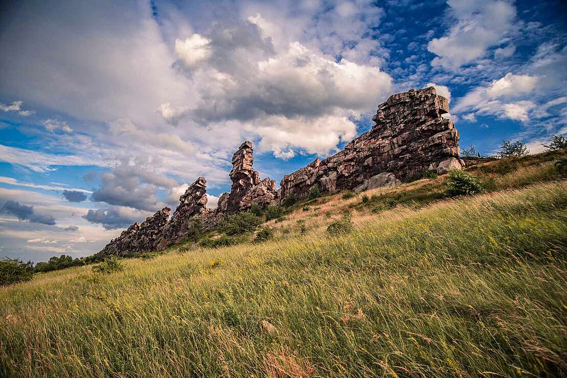 Het startpunt in Blankenburg is het treinstation, dat gemakkelijk te bereiken is met bijna elk vervoermiddel. Het eerste fietshoogtepunt van de route langs de Duivelsmuur is de zogenaamde "Hamburger Wappen". De bizarre groep rotsen maakt deel uit van de legendarische Duivelsmuur tussen Blankenburg en Timmenrode en dankt zijn naam aan de drie rechtopstaande rotspunten, die doen denken aan het wapen van Hamburg. Fietsers kunnen vanaf deze plek genieten van een prachtig uitzicht in bijna alle richtingen. Tafels en bankjes nodigen uit voor een pauze.