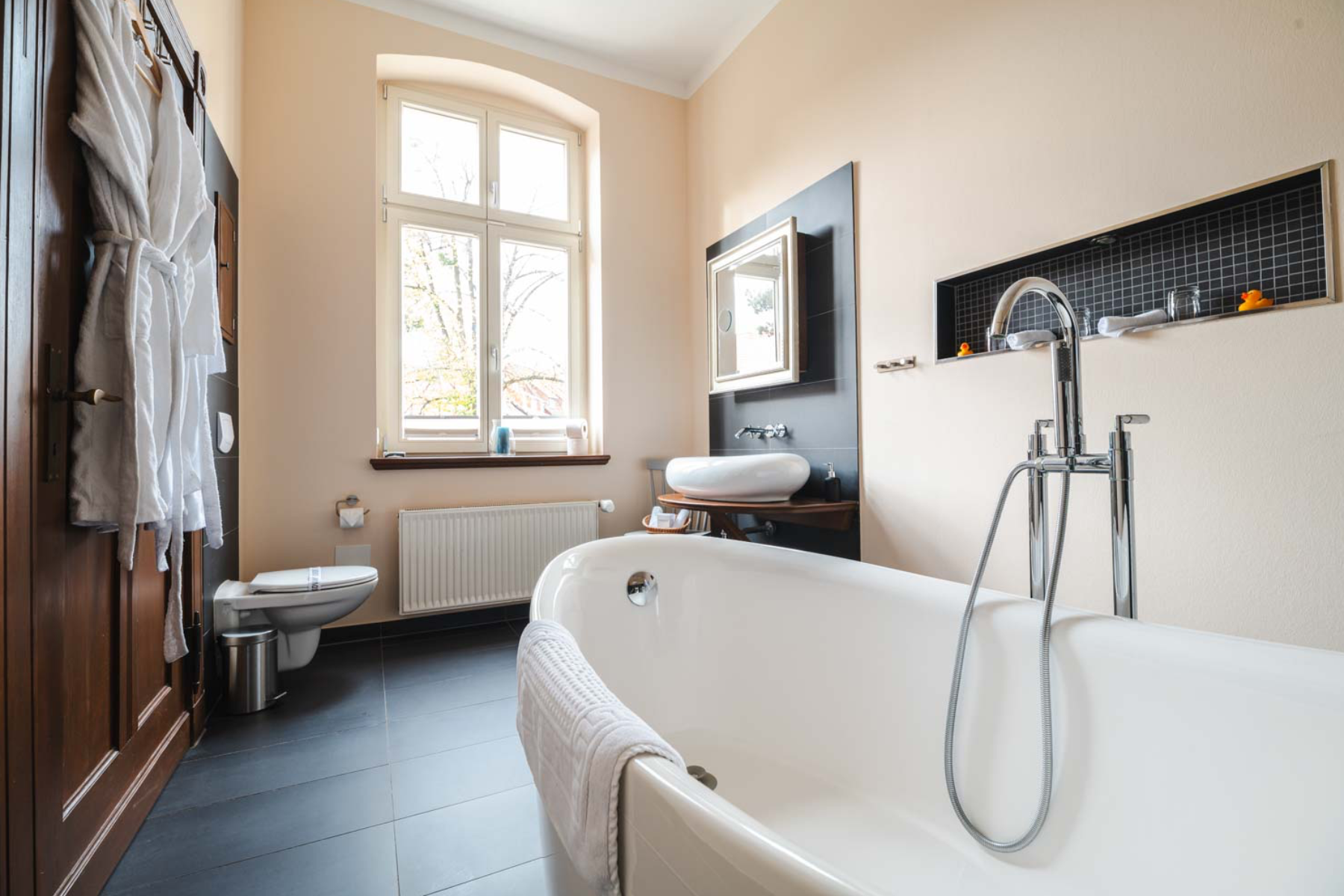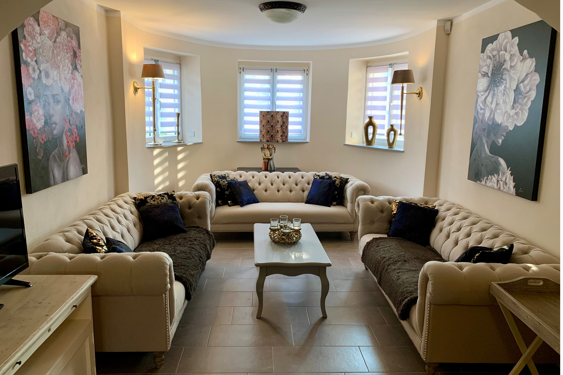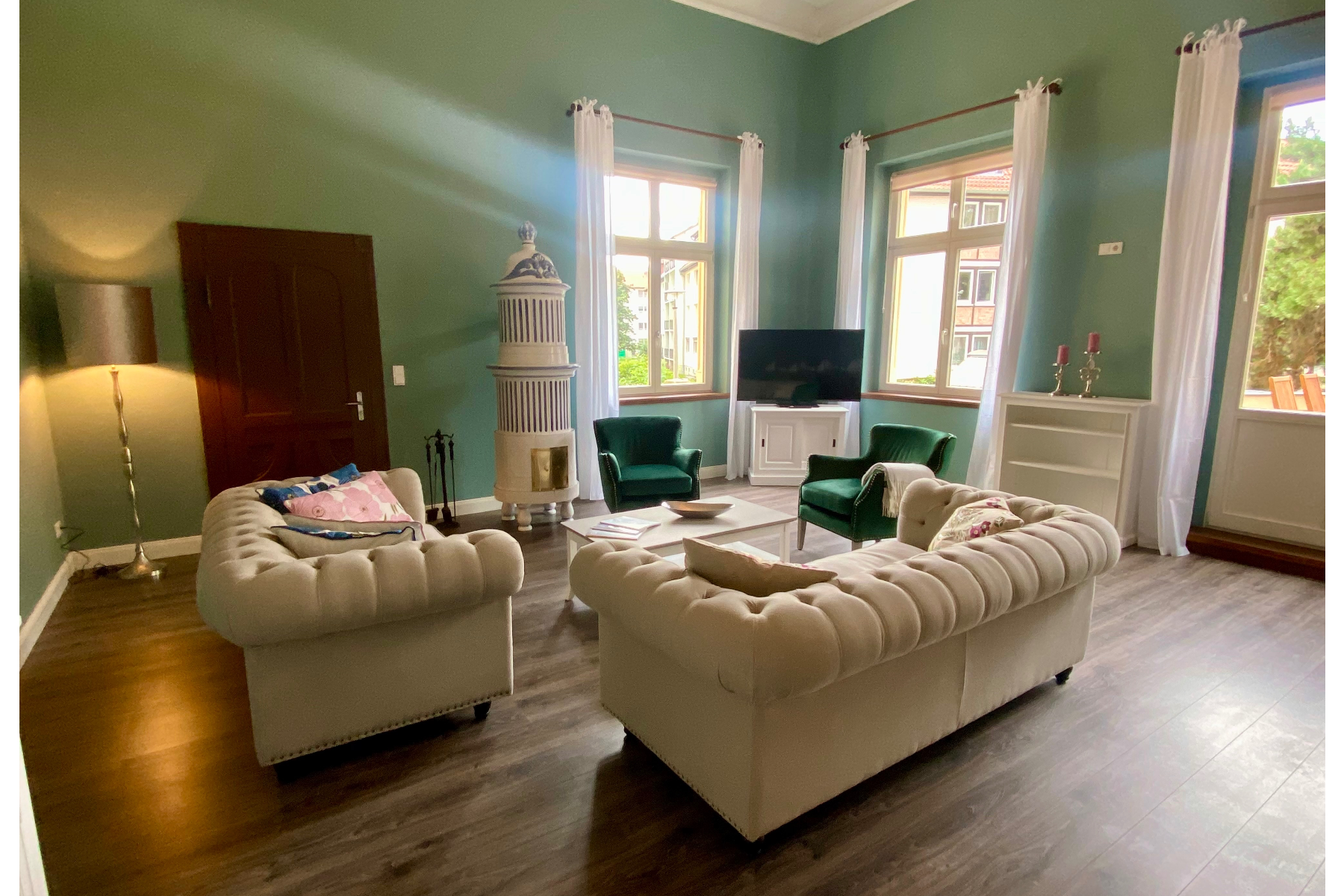 Wejdź do apartamentu Deluxe Souterrain o powierzchni 110 metrów kwadratowych w Villa Le Palais. Tylko spokój jest źródłem wielkiej siły. Sklepione sufity opowiadają historie z czasów historycznych... Romantyczny, bajkowy i wyjątkowy opisują pobyt w wyjątkowej atmosferze.