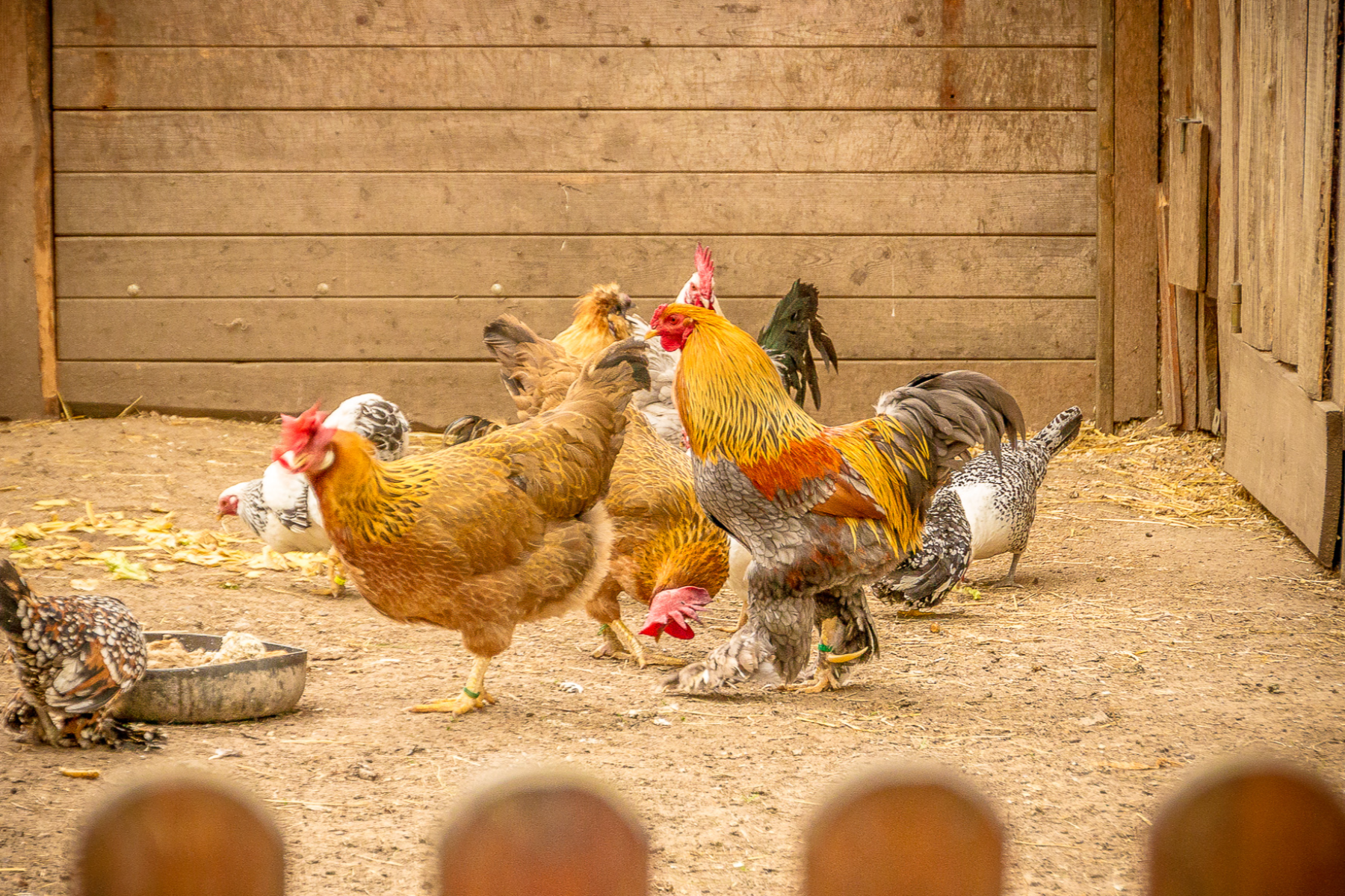 Наши маленькие гости могут выпустить пар на нашей игровой площадке. В нашем вольере для животных есть кролики, утки, куры и павлинья пара. Для самых маленьких есть пункт смены подгузников.