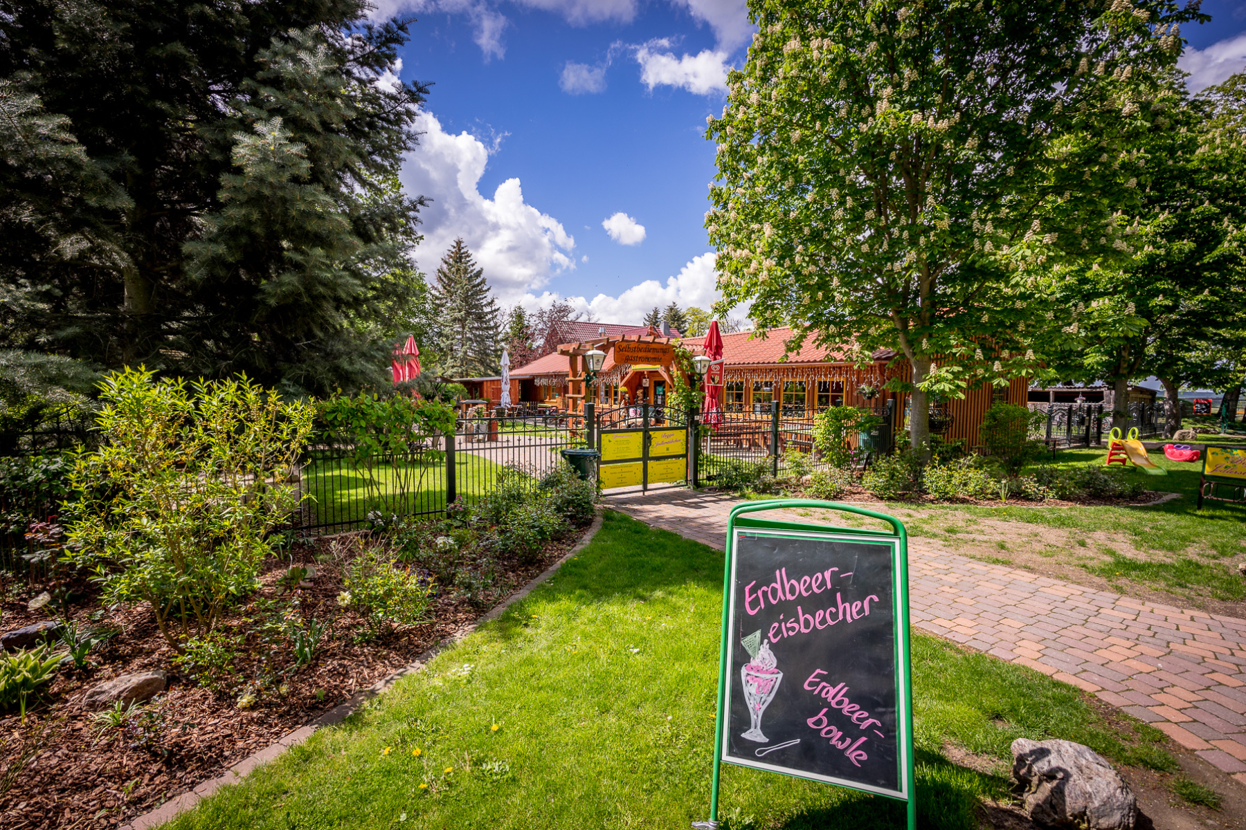 Вы можете пообедать у нас с 12 часов дня. Насладитесь сытной немецкой домашней кухней с сезонными блюдами. В нашем разнообразном меню есть блюда для детей и вегетарианцев. Игровая площадка и вольер для животных Kotoll