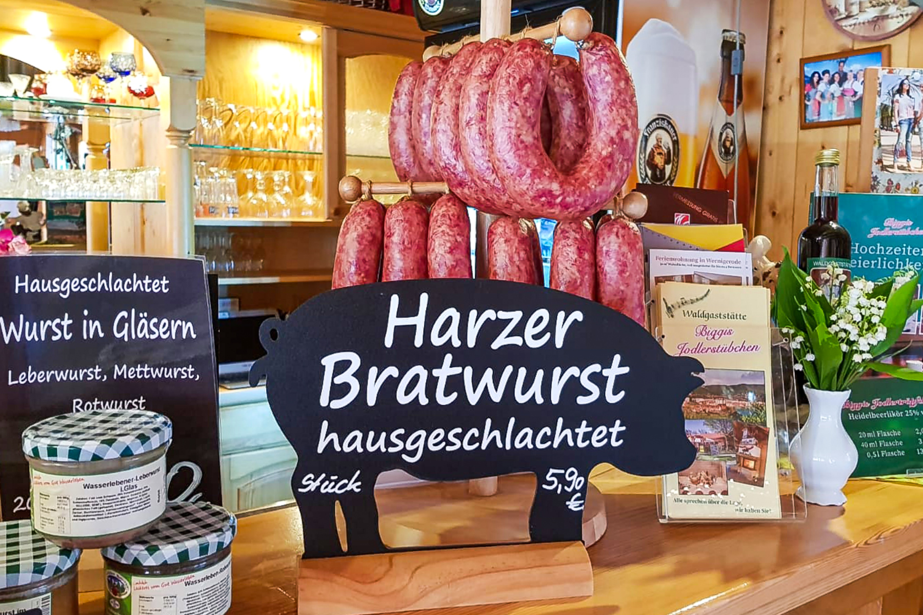 Только у нас вы можете купить Biggis Jodlertröpfchen (черничный ликер, 25 % об.), деревянные украшения ручной работы, вкуснейшую домашнюю колбасу или подарить уникальный опыт с помощью нашего подарочного сертификата.