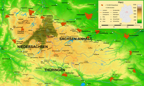 Unsere Harz Karte liefert dir einen Überblick über die gesamte Region Harz, ideal für Urlauber und Touristen, die sich ein Bild vom Harz und dessen Geografie machen wollen oder auf der Suche nach der nächsten Sehenswürdigkeit sind. Entdecke die Harzer Städte und Orte auf einen Blick und blende auf Wunsch weitere Ebenen ein, darunter Straßen, Gewässer, Gebirgszüge, Burgen, Schlösser, Kirchen, UNESCO Welterbestätten und viele mehr.