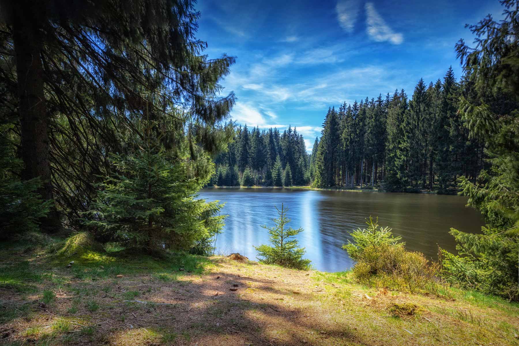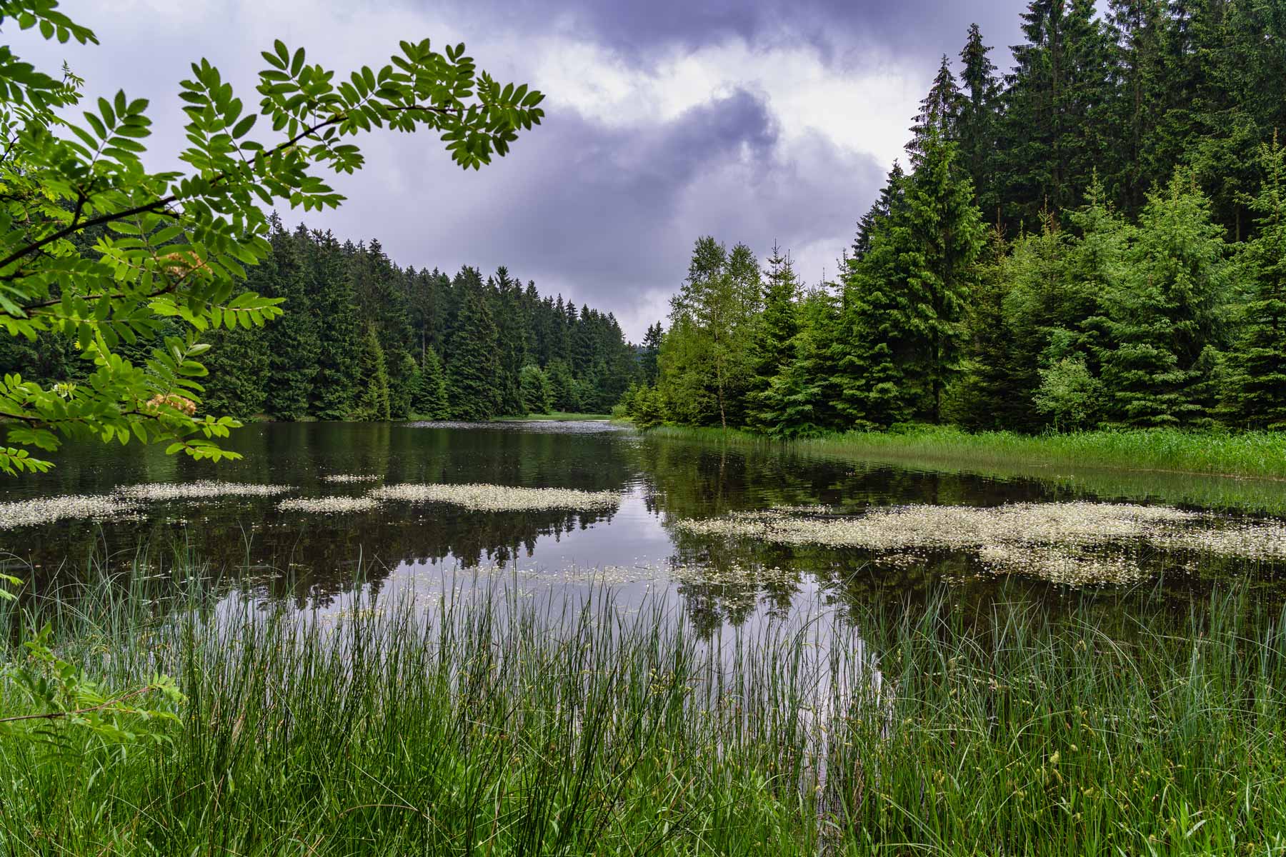 Harz Dağları'nda Buntenbock yakınlarındaki eski maden göleti
