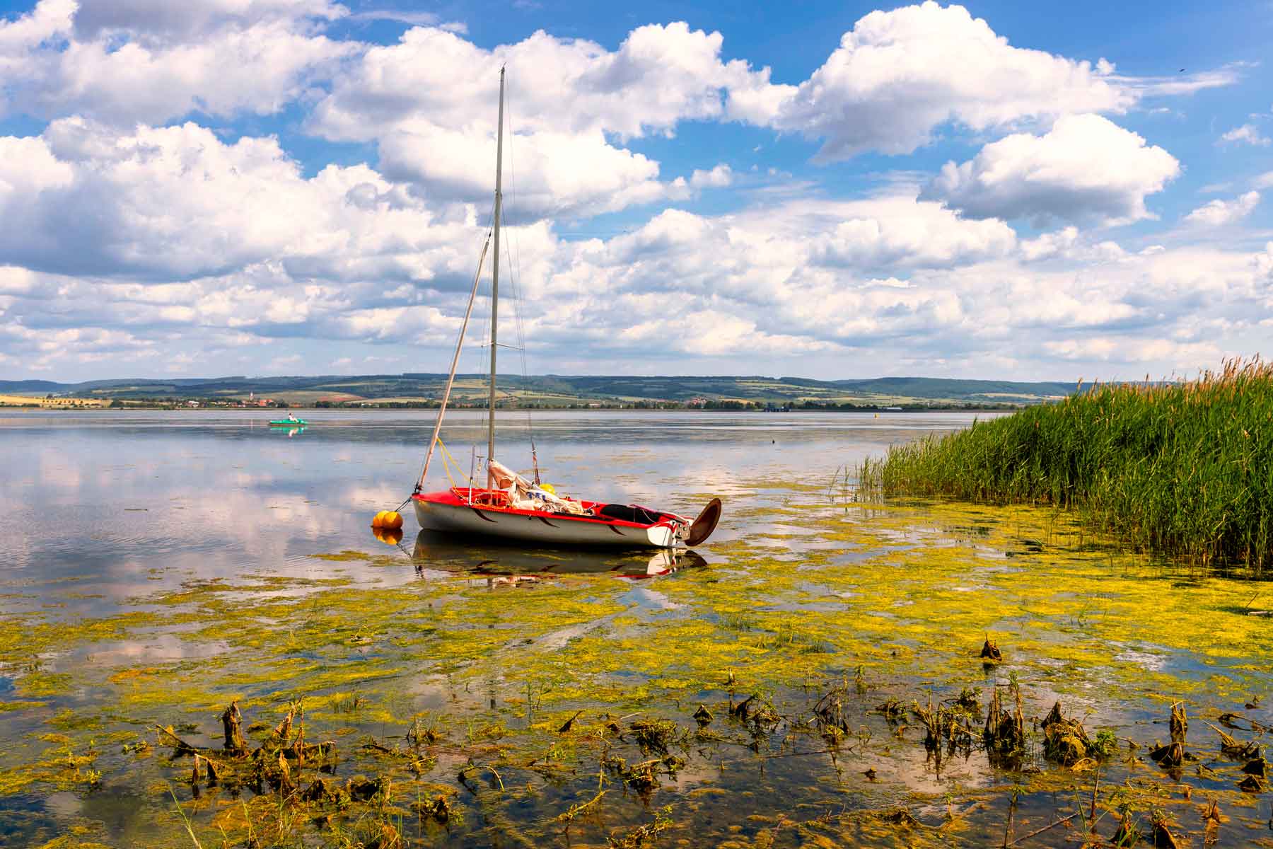 Baraj, bölgeyi korkunç bahar sellerinden korumak amacıyla 1962 ve 1966 yılları arasında inşa edilmiştir. Yıllar içinde tesis genişletilerek bugün dört kilometre uzunluğundaki ana baraj ve üç kilometre uzunluğundaki ikincil baraj ile iki etkileyici yapı taşkınlara karşı koruma sağlamaktadır. Yaklaşık 12,3 milyon metreküplük kapasitesiyle rezervuar aynı zamanda yakın bölgedeki en büyük göldür. Ortalama 3.50 metre derinlik ve 5.50 metrelik alçak nokta, burada barındırılabilecek hatırı sayılır su kütleleri hakkında bir fikir vermektedir.