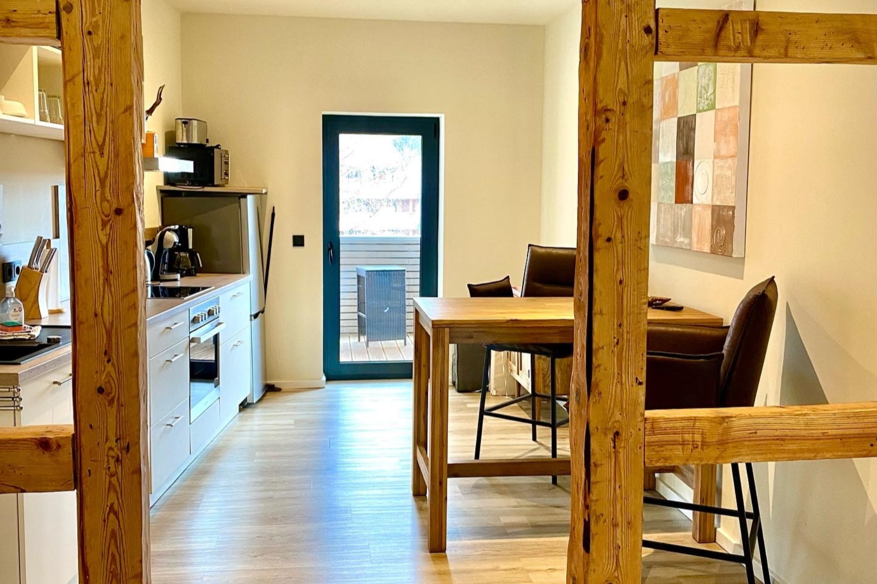 Wohlige Fußbodenheizung, offenes Fachwerk, Kaminofenfeuer und Bäder mit angenehmer Regendusche lassen Sie vom ersten Augenblick entspannen.