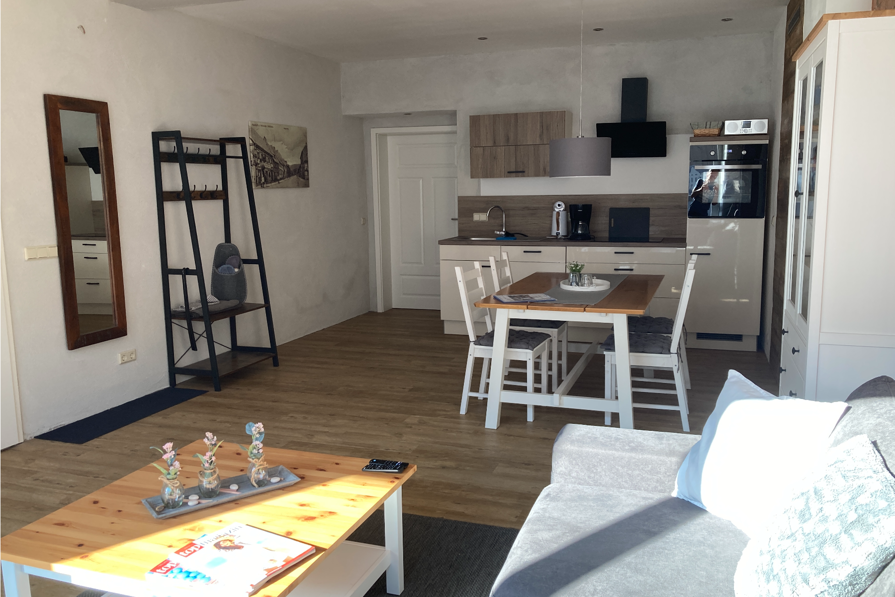 Unsere komfortabel und gemütlich eingerichtete Ferienwohnung für 3 Personen befindet direkt in der Ortsmitte unweit vom Neustädter Roland.