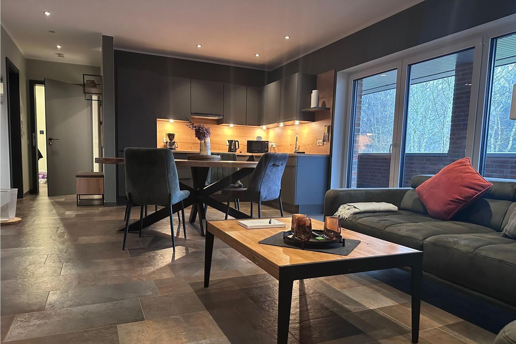 Das Eastside-Braunlage steht für modernen Komfort und stilvolle Erholung im Herzen des Harzes. Das Ferienhaus beherbergt fünf smarte Ferienwohnungen, die allesamt mit einem hochwertigen Loxone SmartHome-System ausgestattet sind und höchsten Wohnkomfort bieten. Jede Wohnung ist exklusiv und geschmackvoll eingerichtet und verfügt über eine voll ausgestattete Küchenzeile sowie ein großzügiges Badezimmer mit begehbarer Dusche. In den beiden oberen Wohnungen erwartet Sie zusätzlich eine private Sauna für entspannte Wellnessmomente. Alle Apartments sind mit Waschmaschine und Trockner ausgestattet.Großzügige Terrassen laden zum Verweilen ein, die oberen Wohnungen bieten zudem beeindruckende Dachterrassen. Kostenlose Parkplätze sowie kostenfreies WLAN runden das Angebot ab.